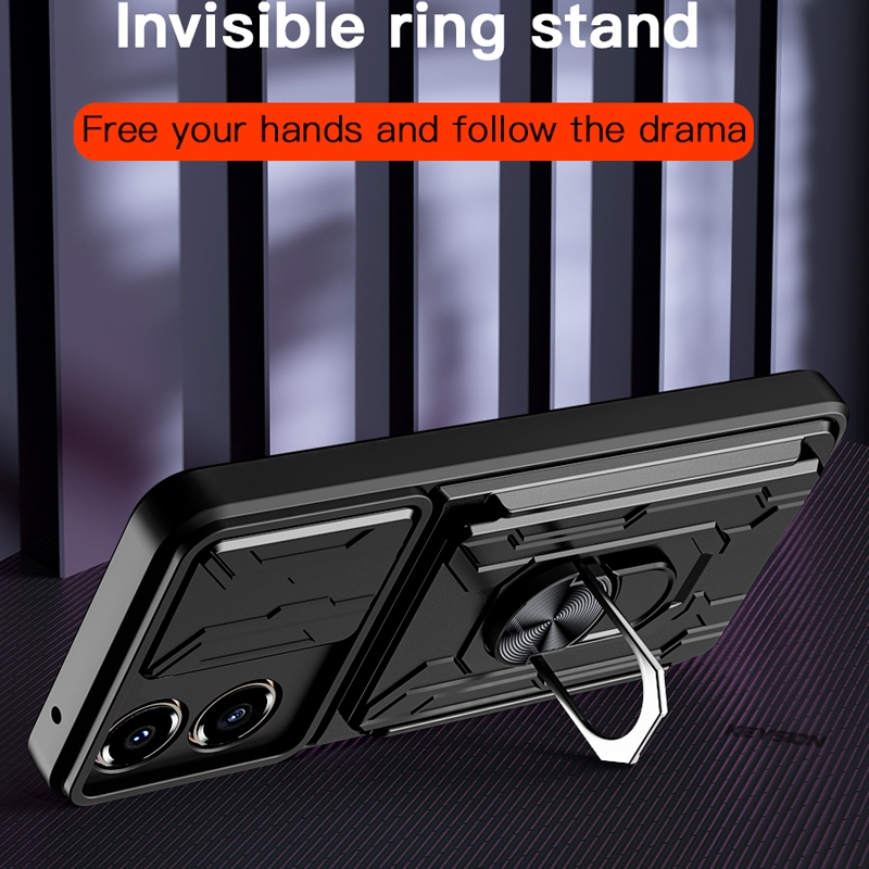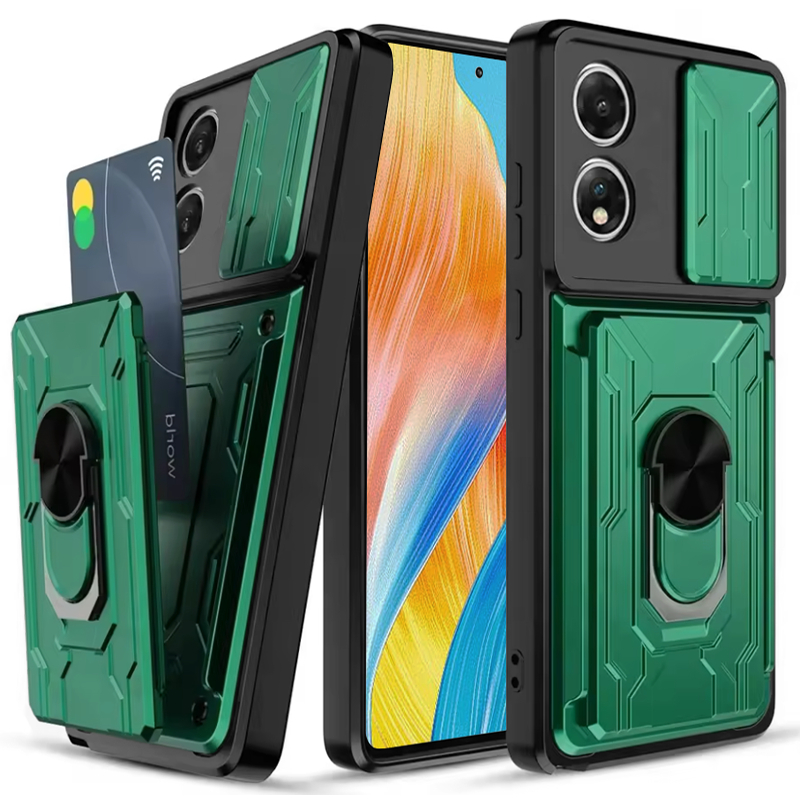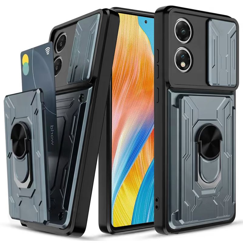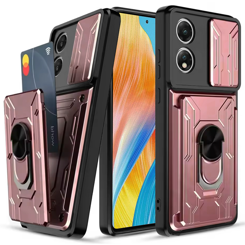 Shockproof Heavy Hard Case with Metal Stand and Card Slots for OPPO A6X A6 Pro A5X A5 Pro A3X A18 A38 A58 A60 A17 A98 A78 A57