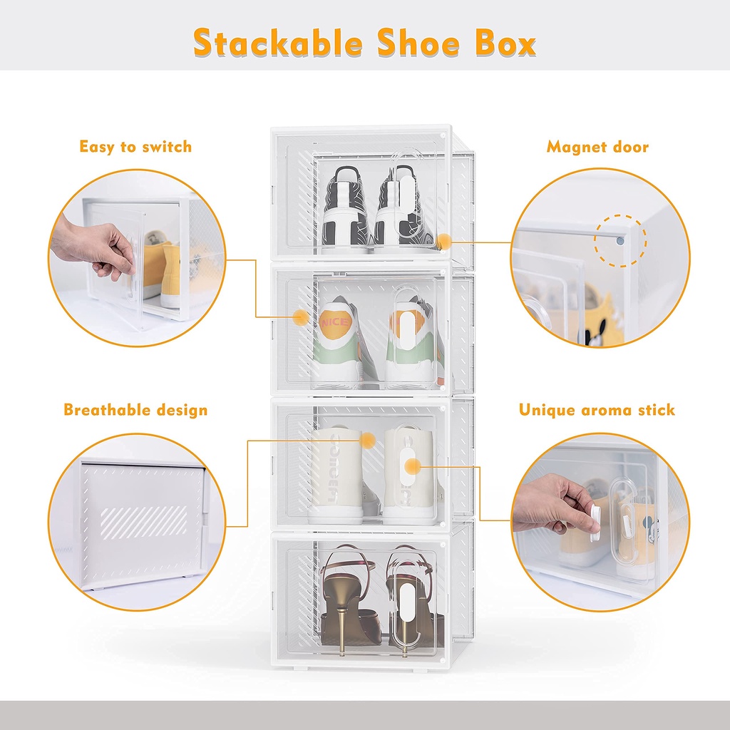 Shoe Box Big Size Stackable XL Sneaker Basketball Shoebox Organizer Clear Plastic Foldable Shoe Oranizer Bins 6/8 PCS