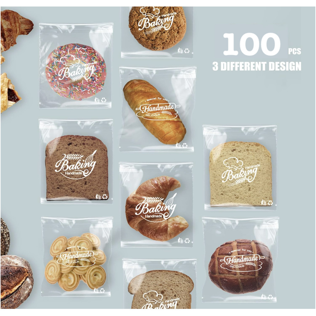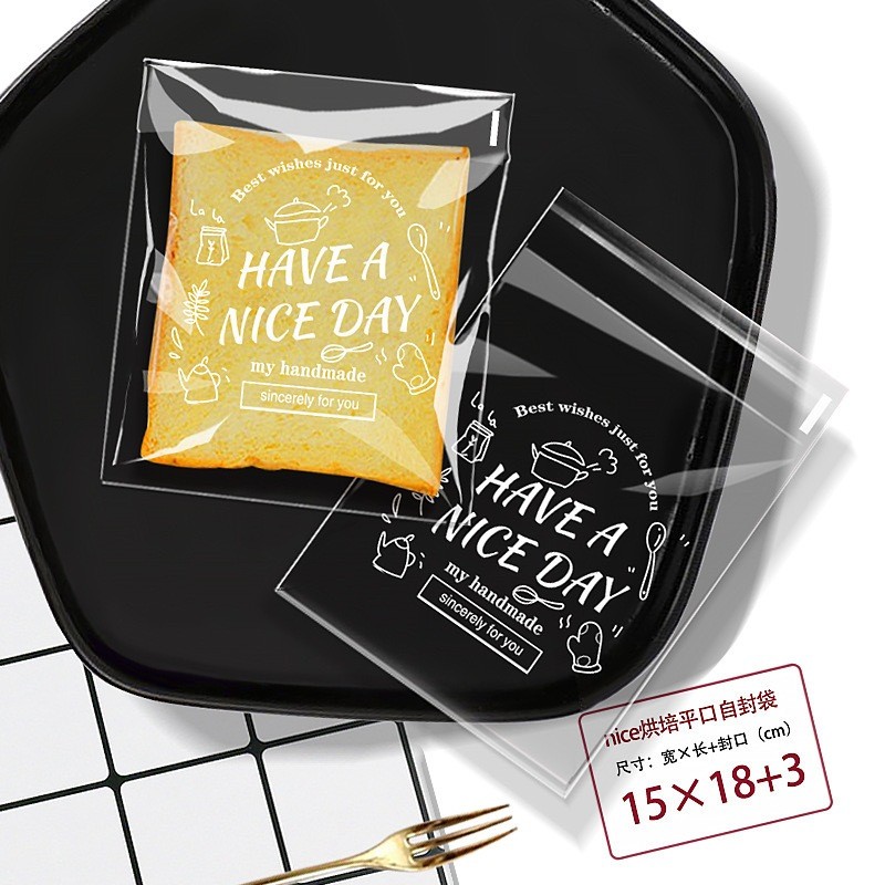 100Pc 15x18cm Plastic Self Adhesive Cookie Donut Bread Pastry Bag Food Packaging Resealable Gift Bag