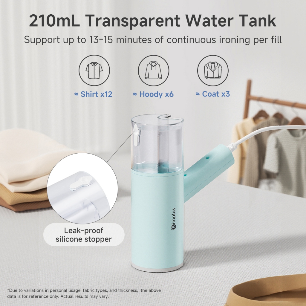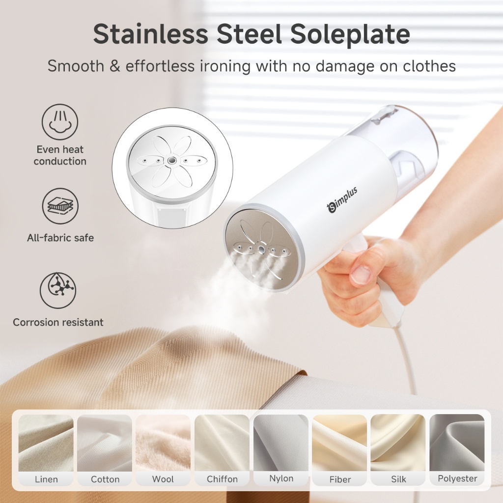 SimplusPink Handheld Steamer - 800W 210mL Tank, Foldable & Travel Ready