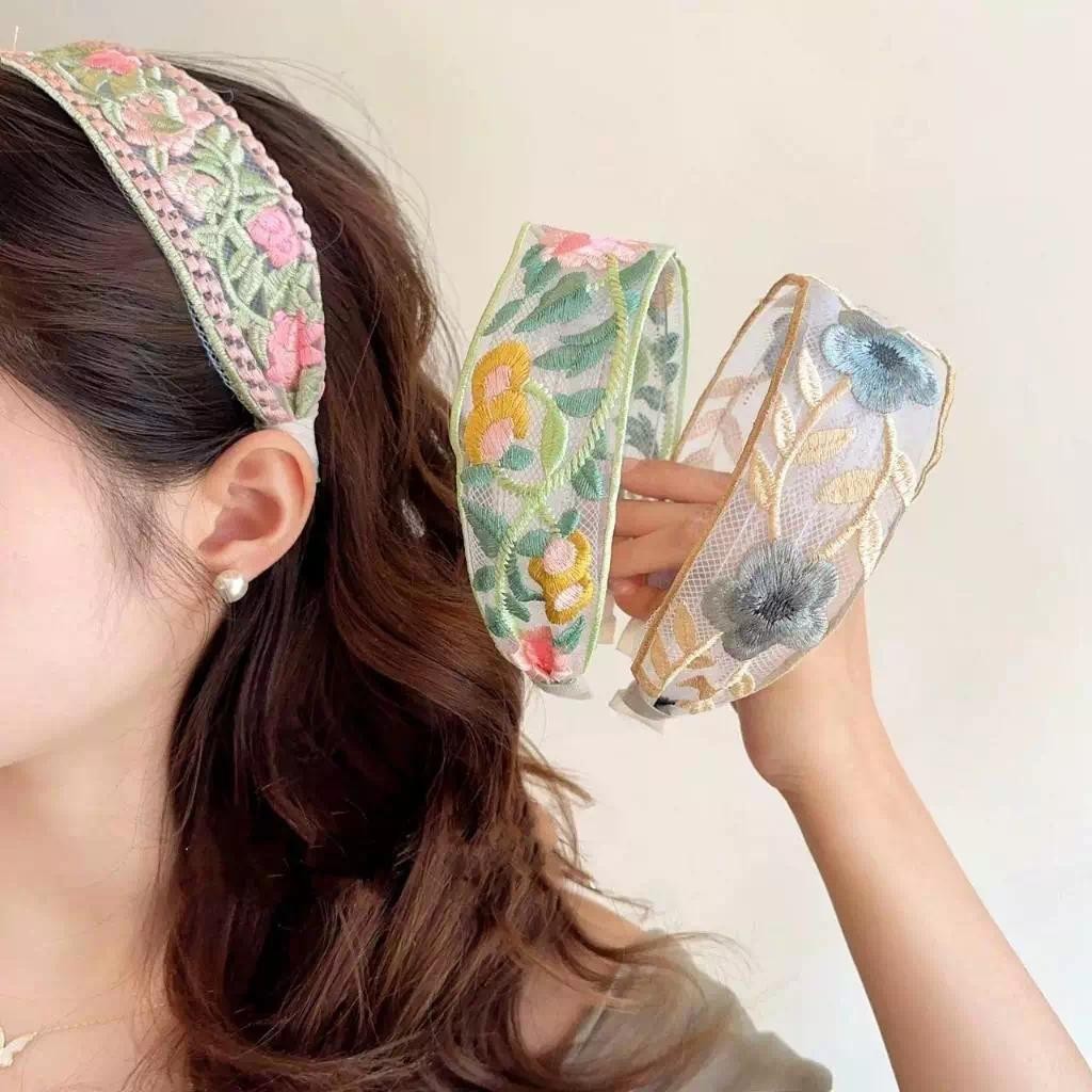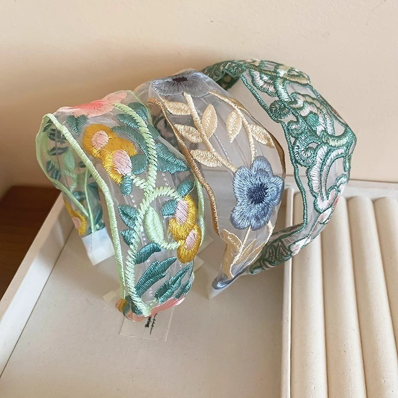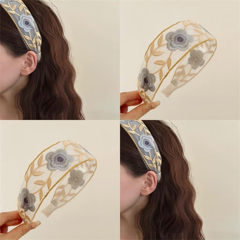 Women Fashion Vintage Floral Embroidery Headwear Hairbands Hair Accessory High-End Flower Headband