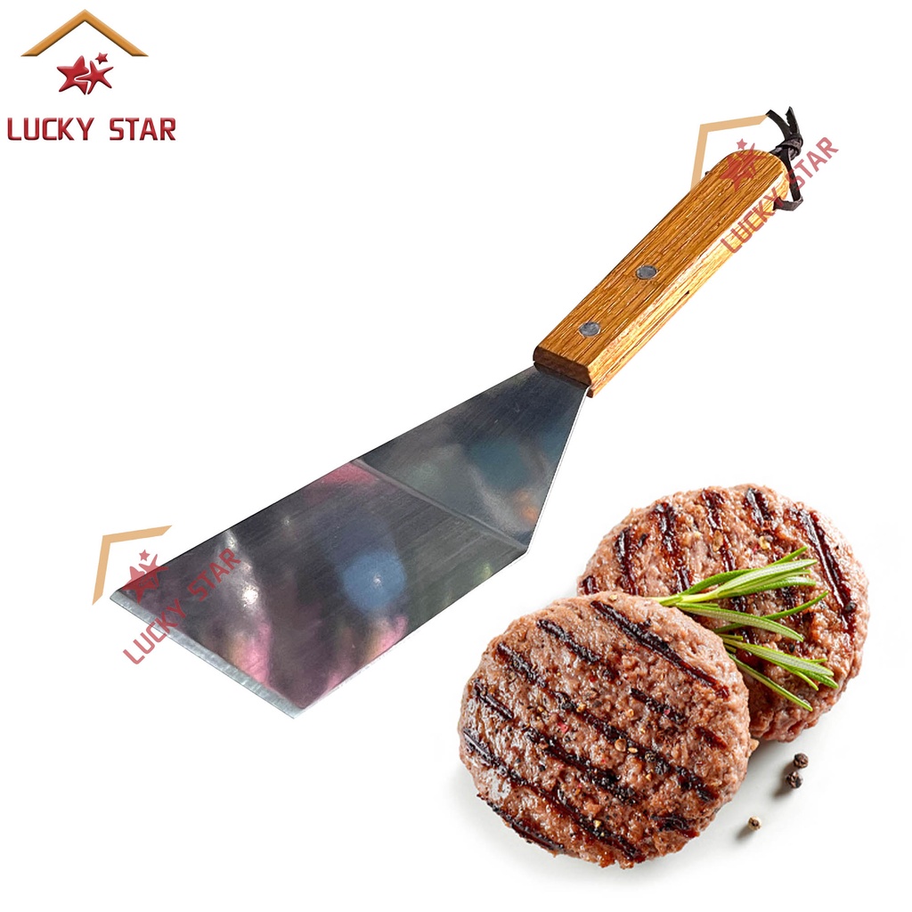 0552 Hamburger Spatula Wood Handle Stainless Steel Grill Turner Steak Spatula Cooking Spatulas