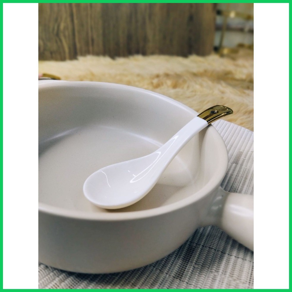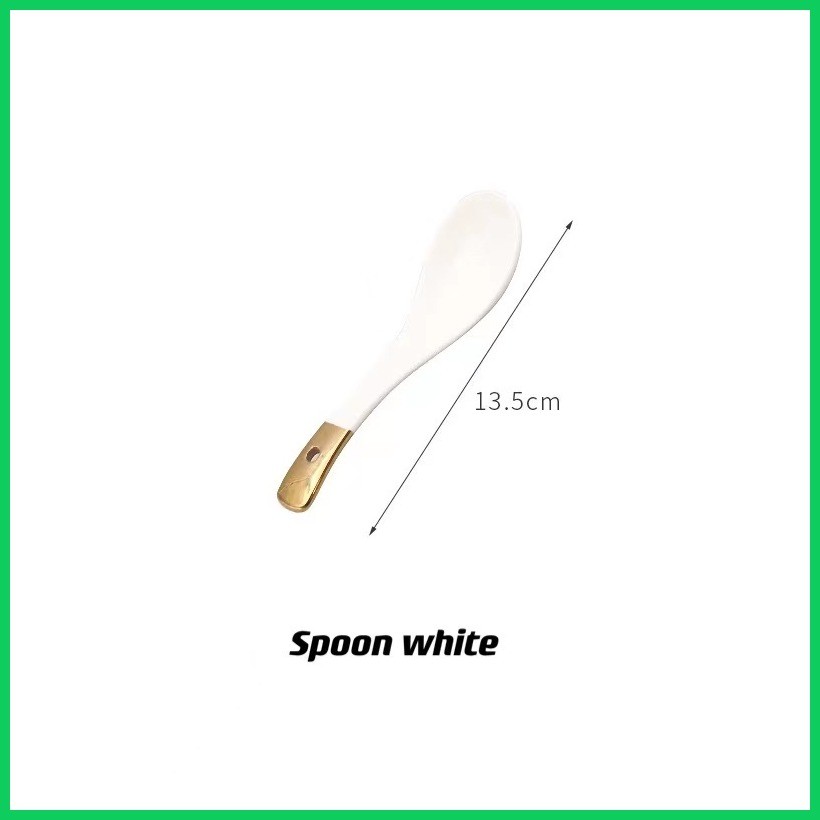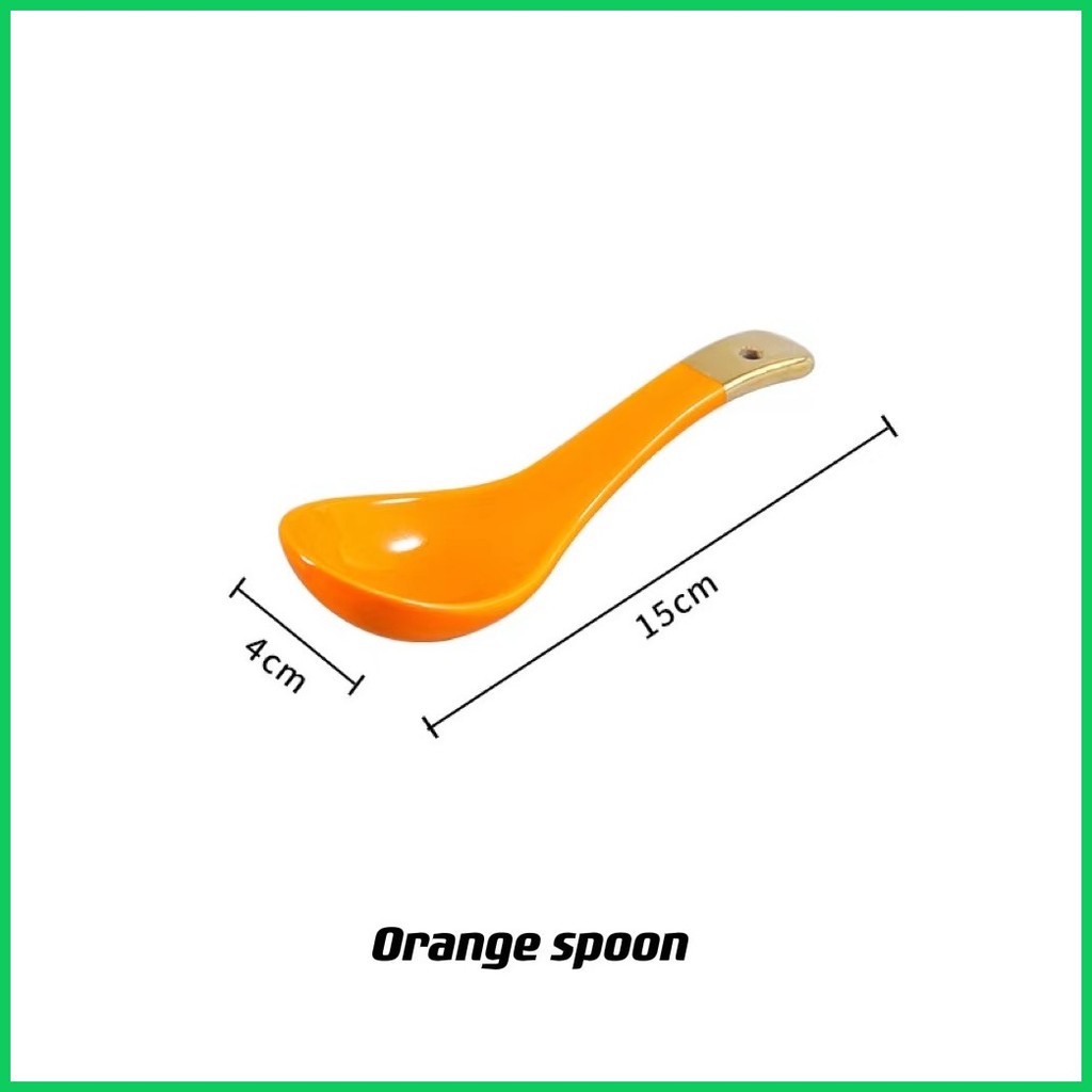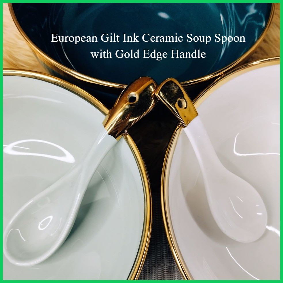 ♨ ♚ KHOME. Ceramic Soup Spoon European Gilt Ink White Pink Black Orange for Noodle Soup Bowl Dish S