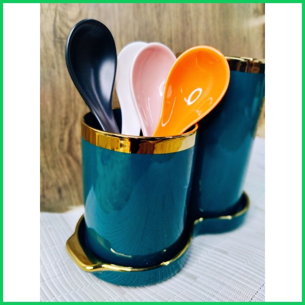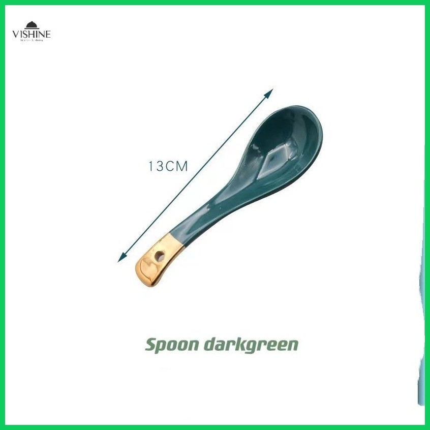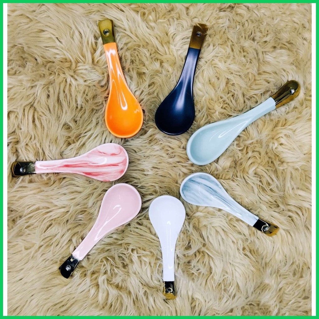 ♨ ♚ KHOME. Ceramic Soup Spoon European Gilt Ink White Pink Black Orange for Noodle Soup Bowl Dish S