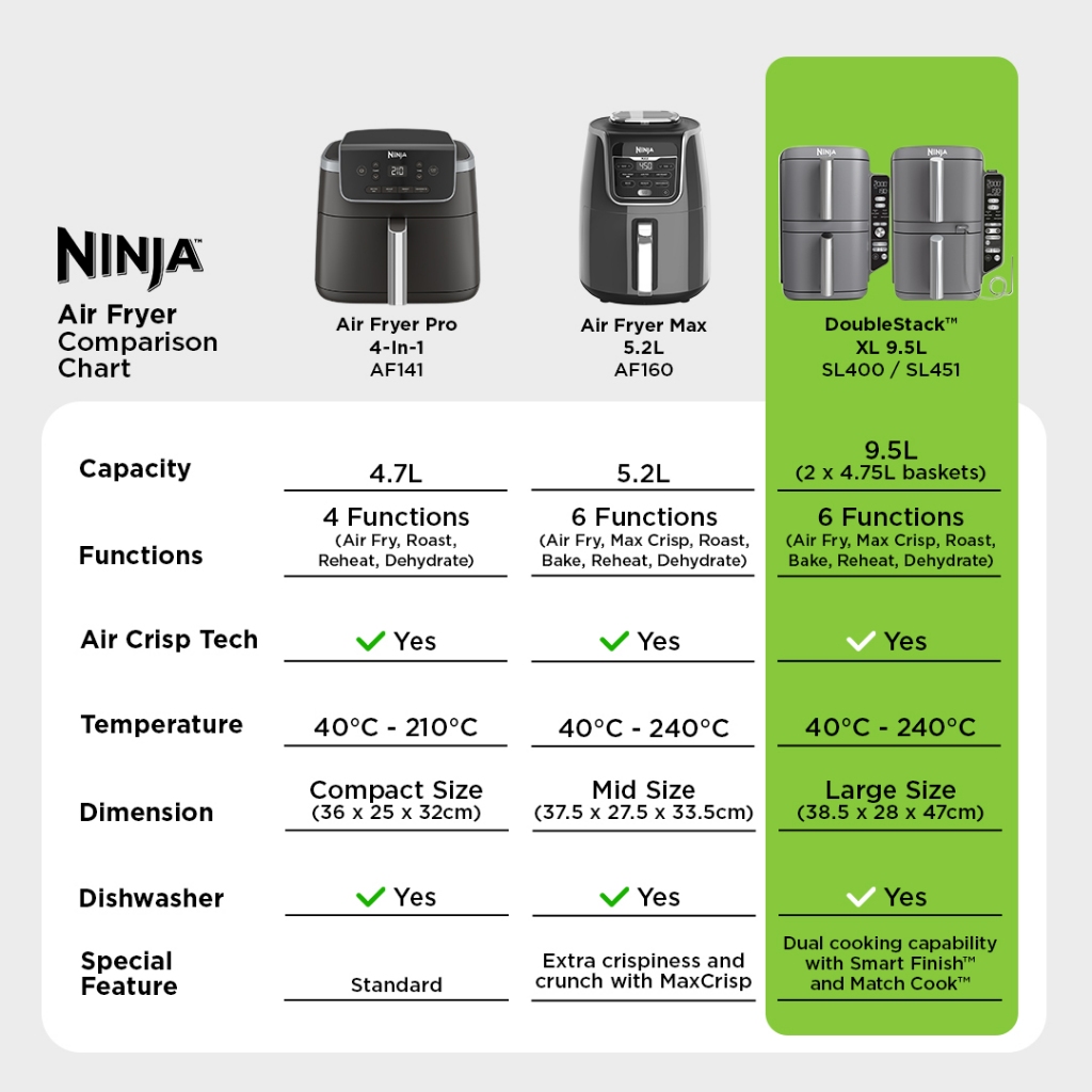 Ninja Double Stack XL 9.5L Air Fryer/ Dual Basket / DoubleStack - SL400/SL451