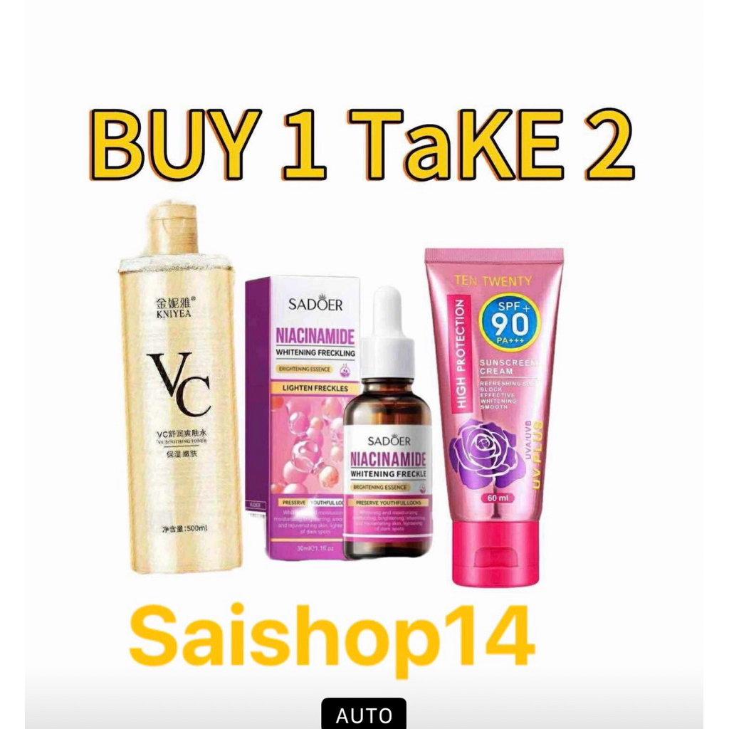 【BUY 1 TAKE 2】KNIYEA VC TONER + SADOER NIACINAMIDEE SERUM + Ten Twenty SUNSCREEN COMBO SE