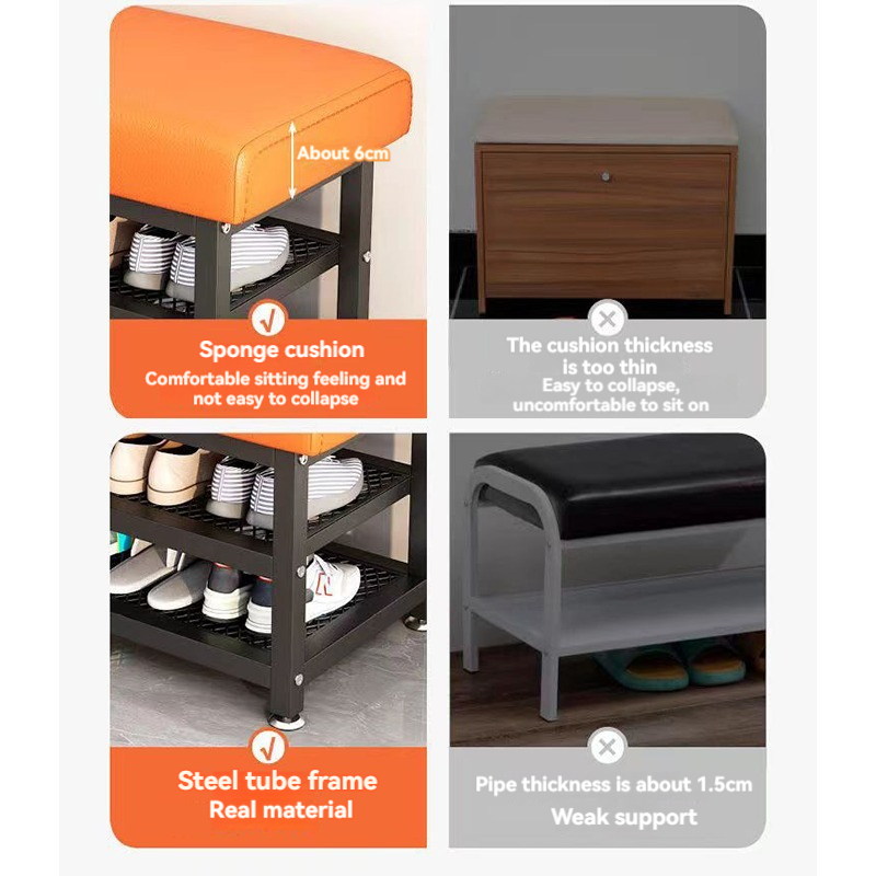 Shoe changing bench Steel Shoe Rack Shoe Stool Home Indoor Shoe Stool With Soft Cushion