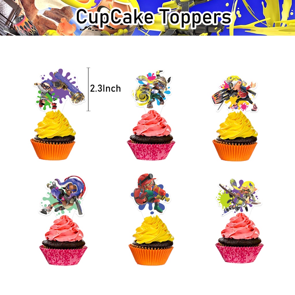 Shooting Game Splatoon 3 Birthday Party Decoration Splatooned Balloon Banner Cake Topper Party Supplise Kids Toys