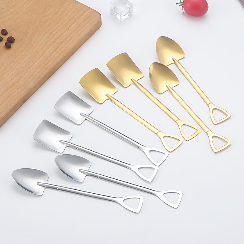 Shovel Spoons Stainless Steel Spoon Reusable Dessert Spoons for Coffee Tea Ice Cream Fruit Cak