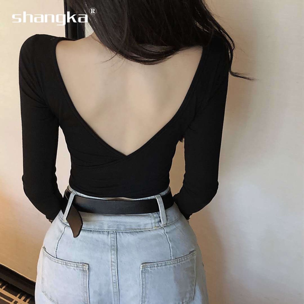 Show Chest Sexy Croptop Woman Halter Tight-Fitting T Shirt for Women Long Sleeve Black Navel Deep V-neck Crop Top Bottoming Shirt Slim Fit Tshirt Elegant Tops Woamn