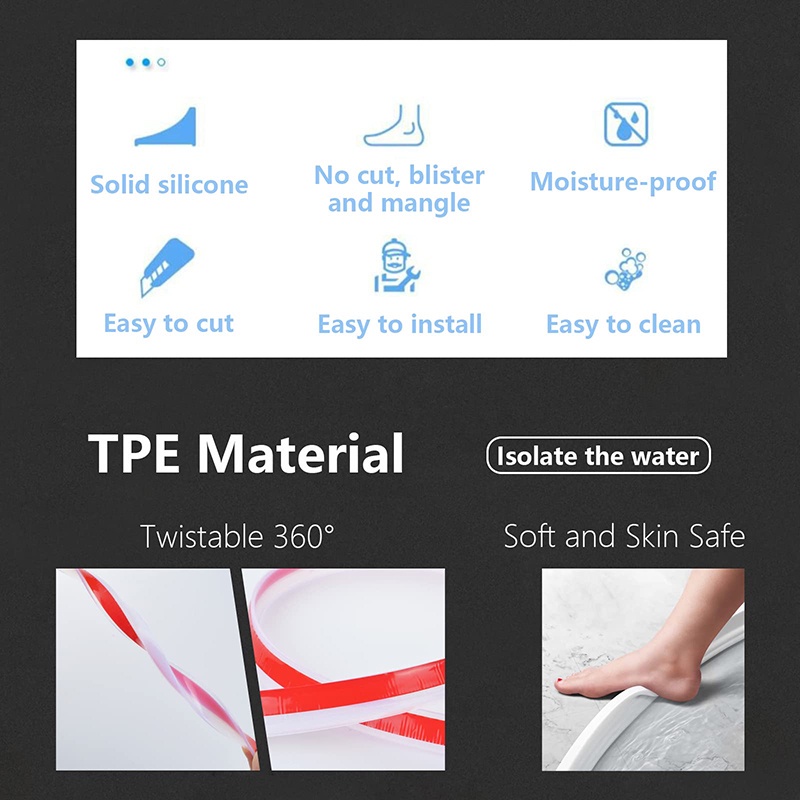 Shower Dam Barrier Water Stopper Bendable Self-Adhesive Water Retaining Strip Flood Barrier Non-slip