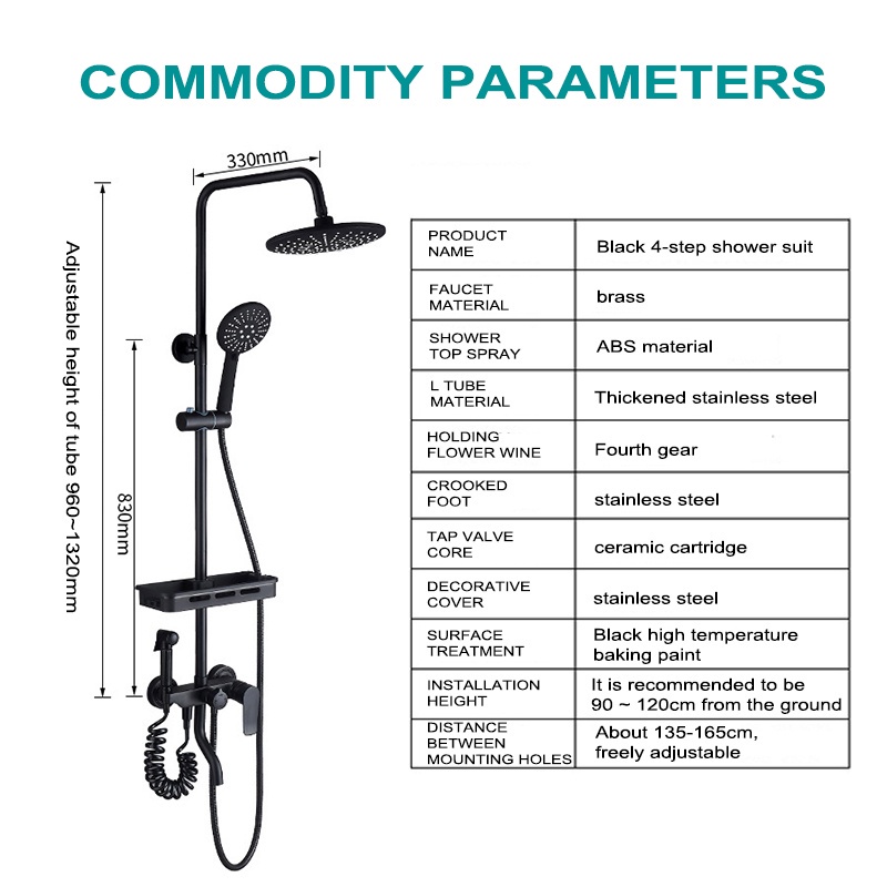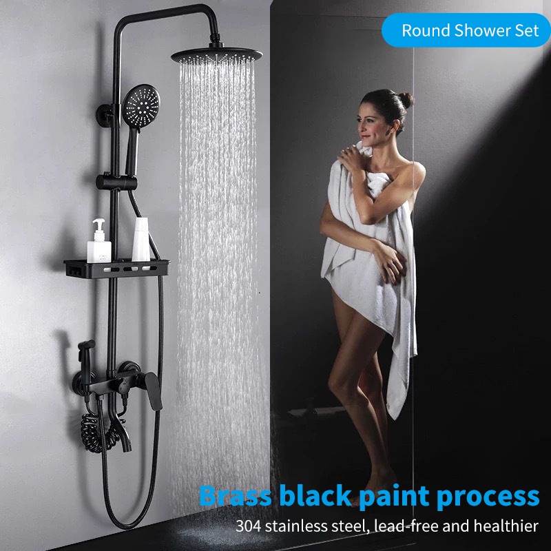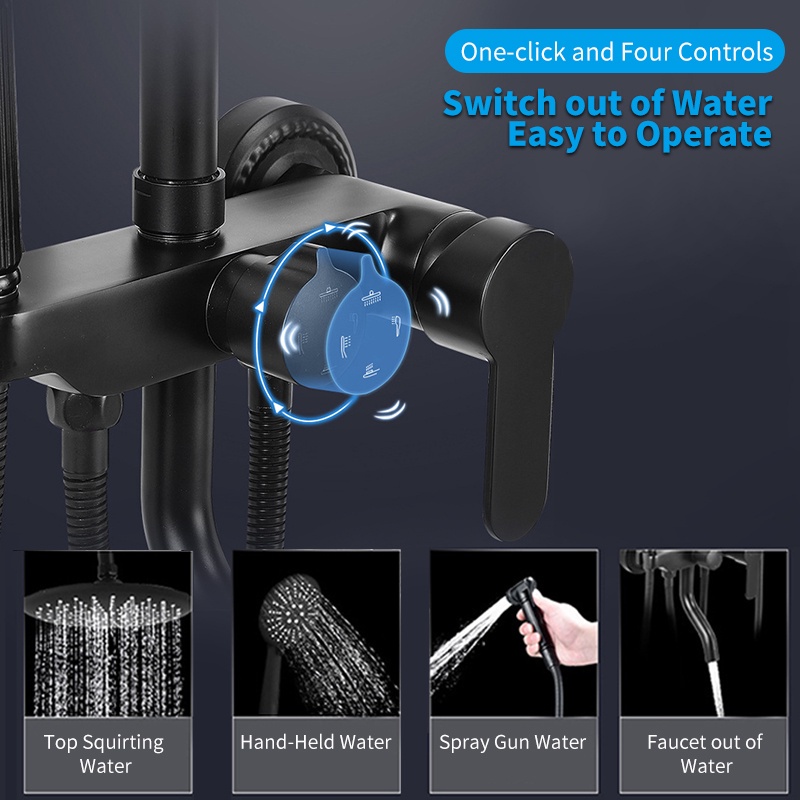 Shower set 304 stainless steel 4 in1 bathroom shower round/square rain shower shower set with faucet