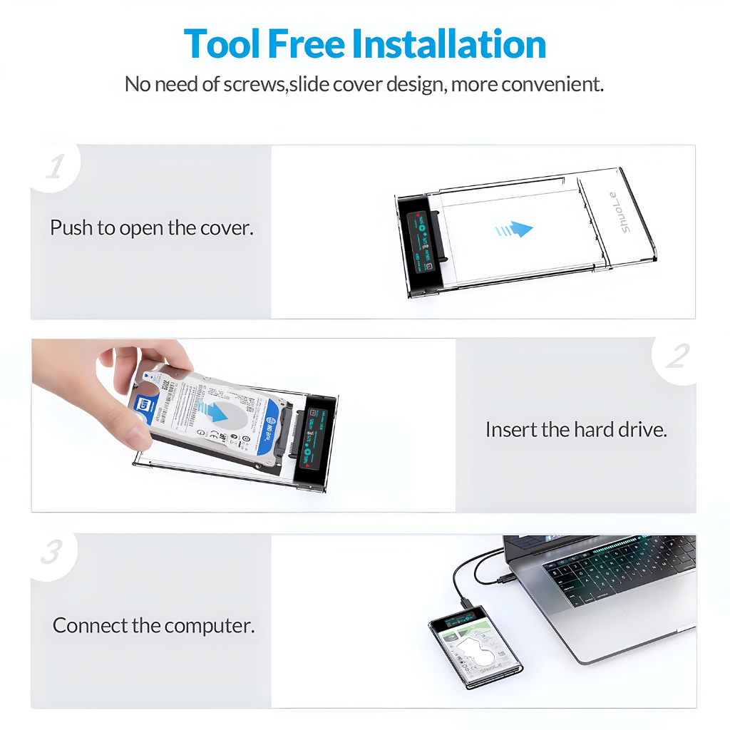 ShuoLe HDD Enclosure 2.5 Inch SSD HDD Case Sata to USB3.0/3.2 Type C 5Gbps Hard Drive Disk Case Digital Display Drive Box