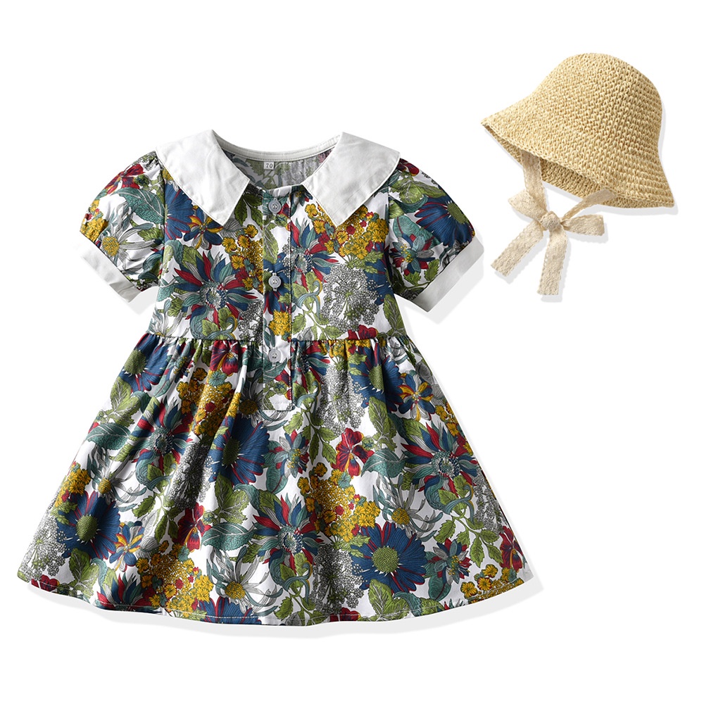 Siblings Twinning Boy and Girl Matching Clothes Daisy Flower Shirt Floral Dress with Hat Set Birthday Photo Shoot Outfit Summer Hawaiian Suit