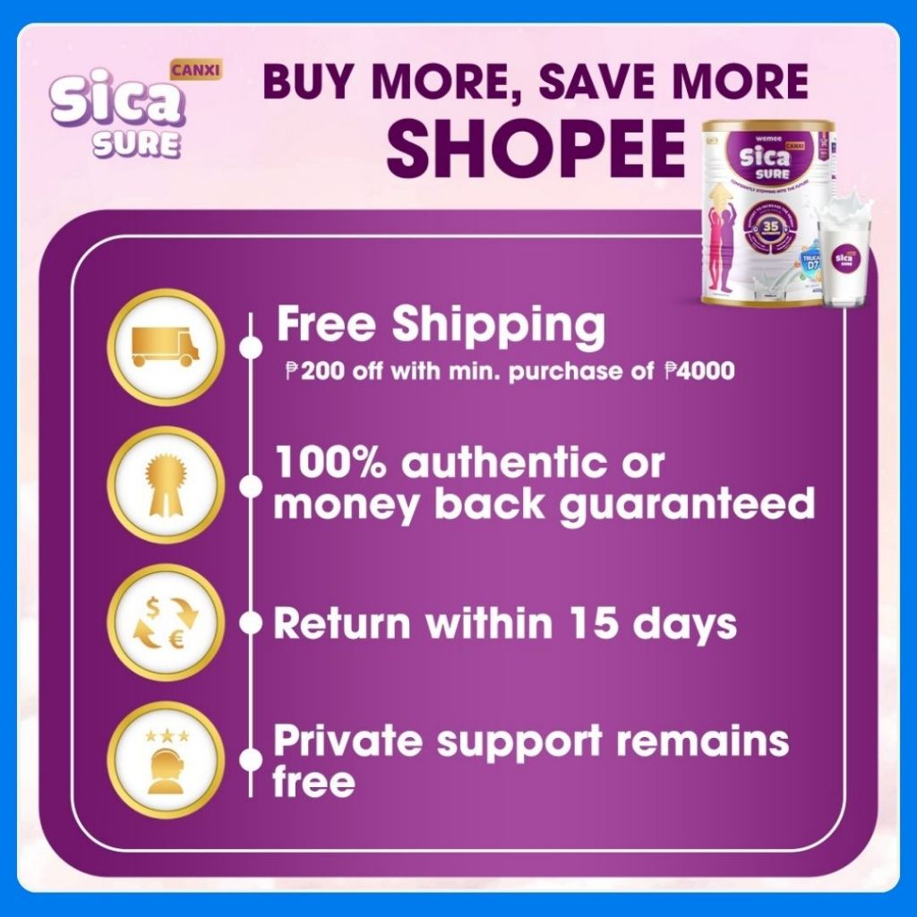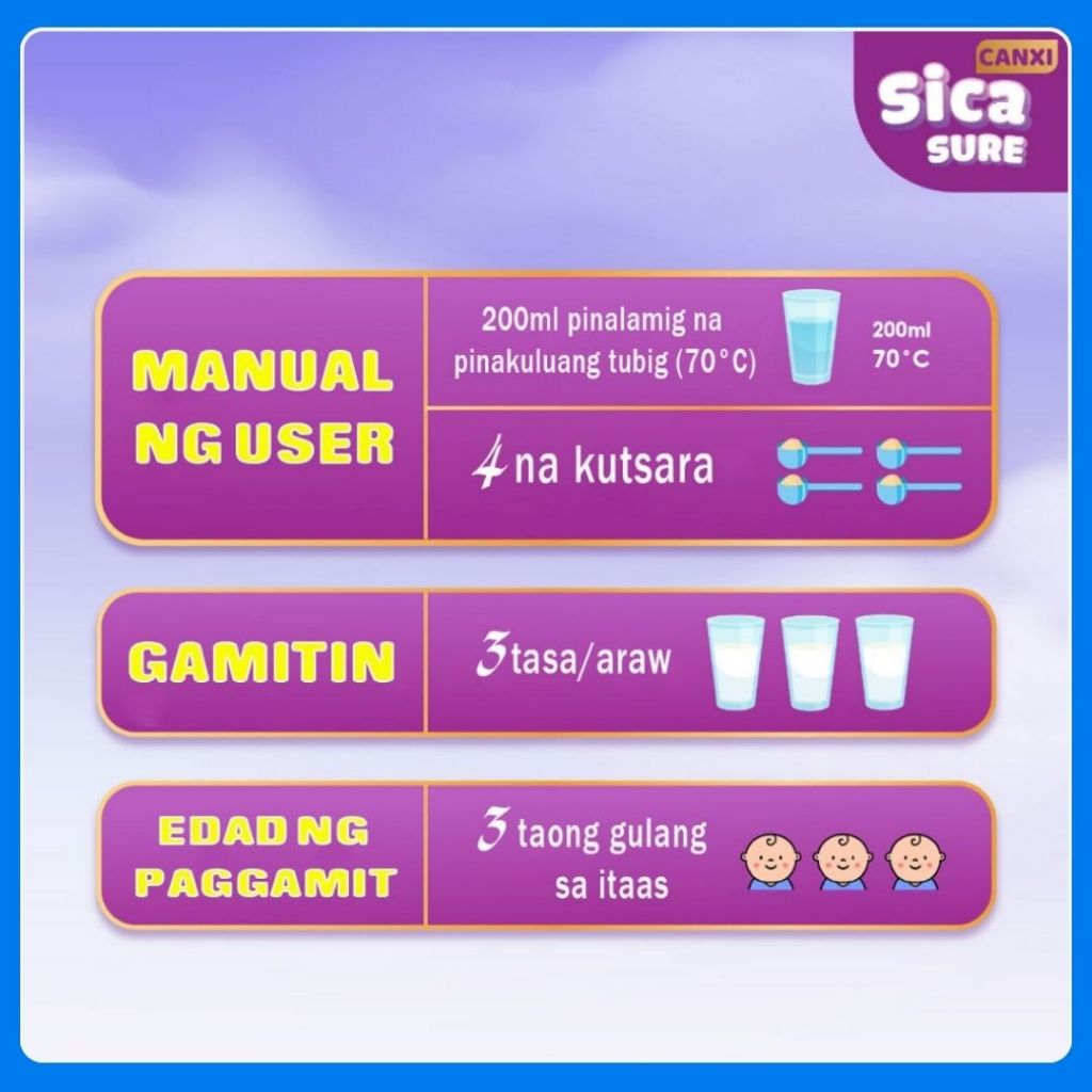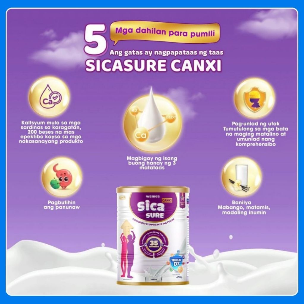 Sica Sure Milk (400g/can) with calcium promotes height growth for children aged 3-18 years old