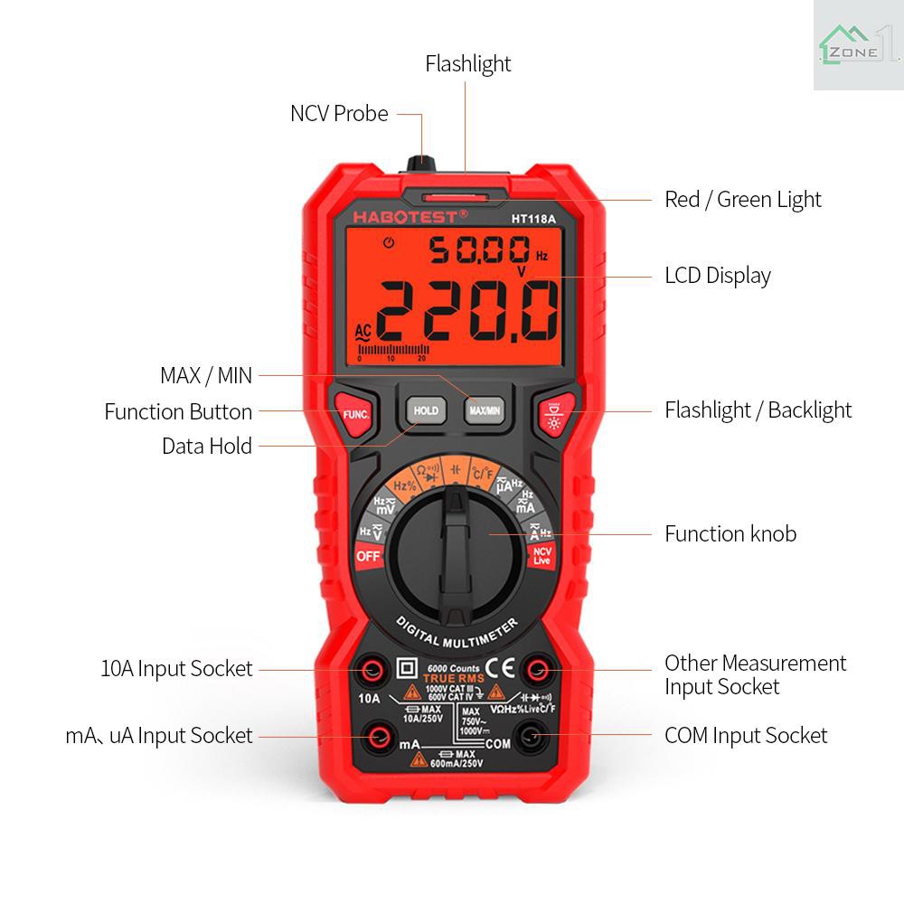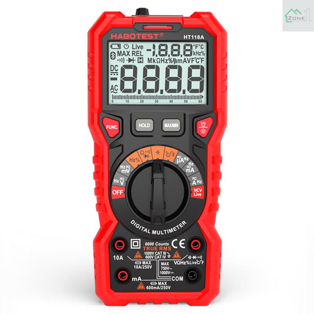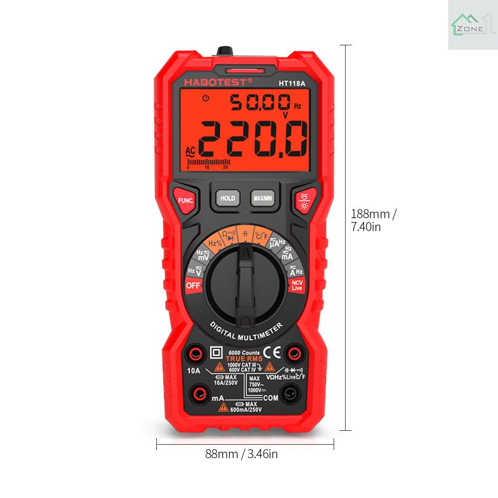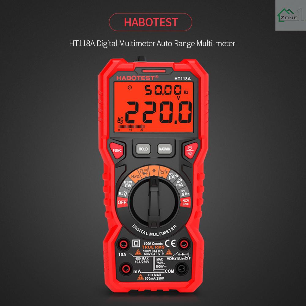 Sicily HABOTEST HT118A Digital Multimeter Auto Range Multi-meter 6000 Counts True RMS Measuring AC/DC Voltage Current Resistance Capacitance Frequency Temperature NCV Test Diode with LCD Backlight Flashlight