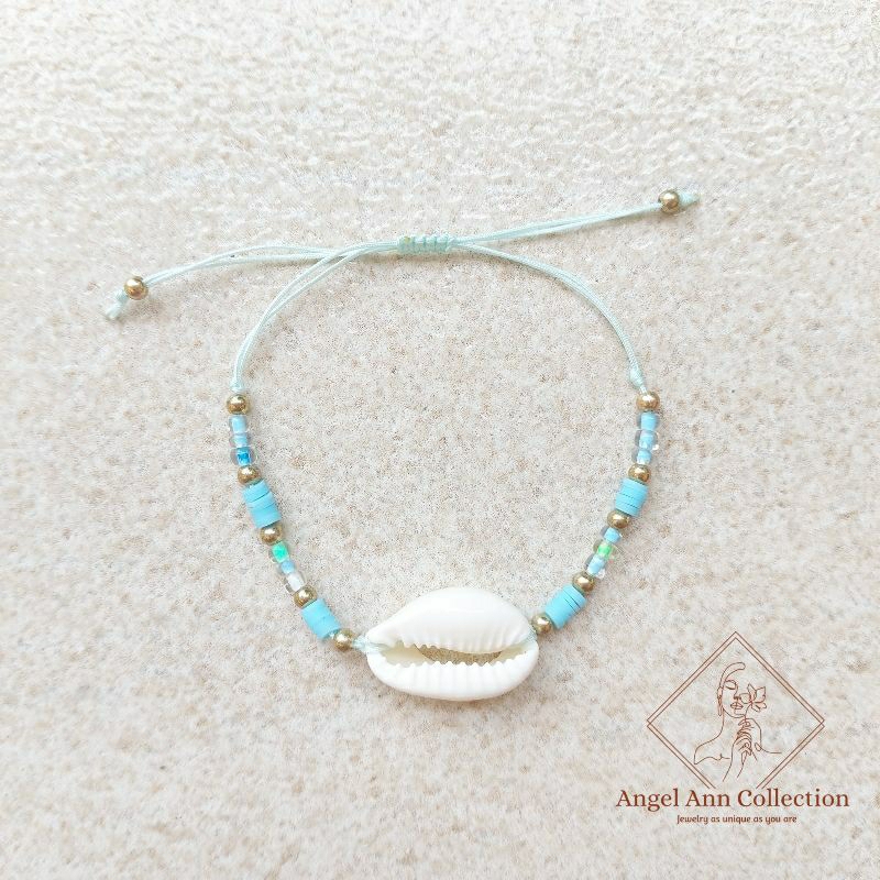 Sigay Shell and Beads Decor Sliding Knot Adjustable Bracelet (16-28 cm)