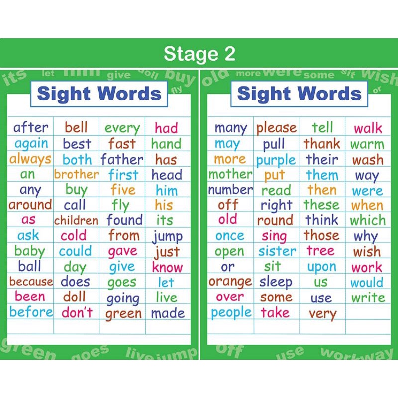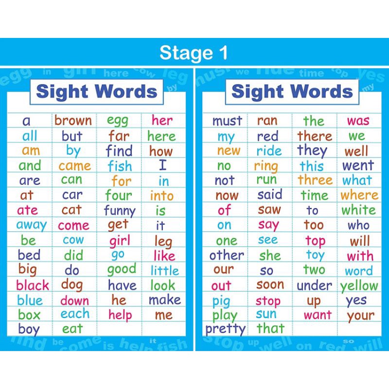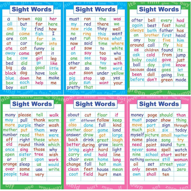 Sight Words Chart Set | A4 Size | Laminated Educational Wall Charts | K - Dolch Sight Word for Kids