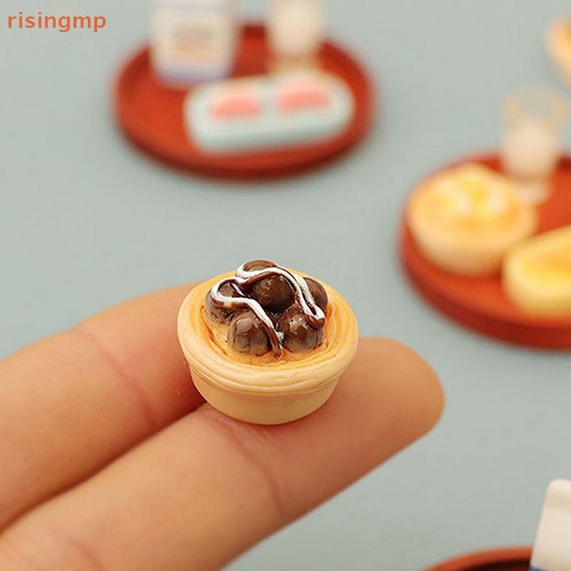 [risingmp] 5PCS 1:12 Dollhouse Miniature Simulation Milk Model Egg Tart Biscuit Ornament Set DIY Decoration Scene Meal Plate Accessories