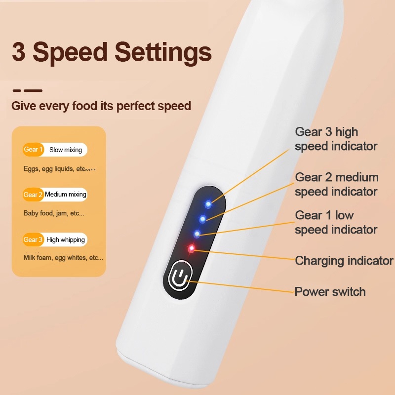 H&M Electric Milk Frother with USB Rechargeabl 3-Speed Handheld Blender for Baking Portable Egg Beat