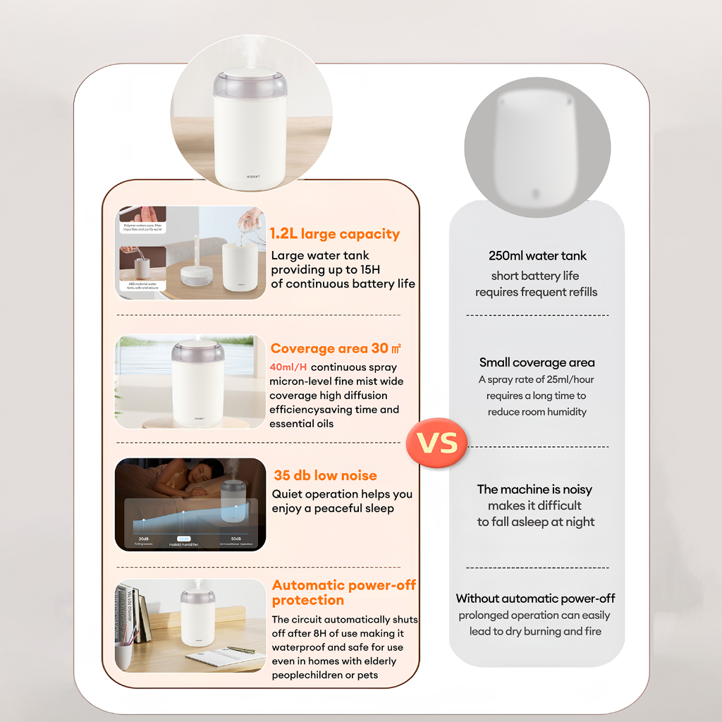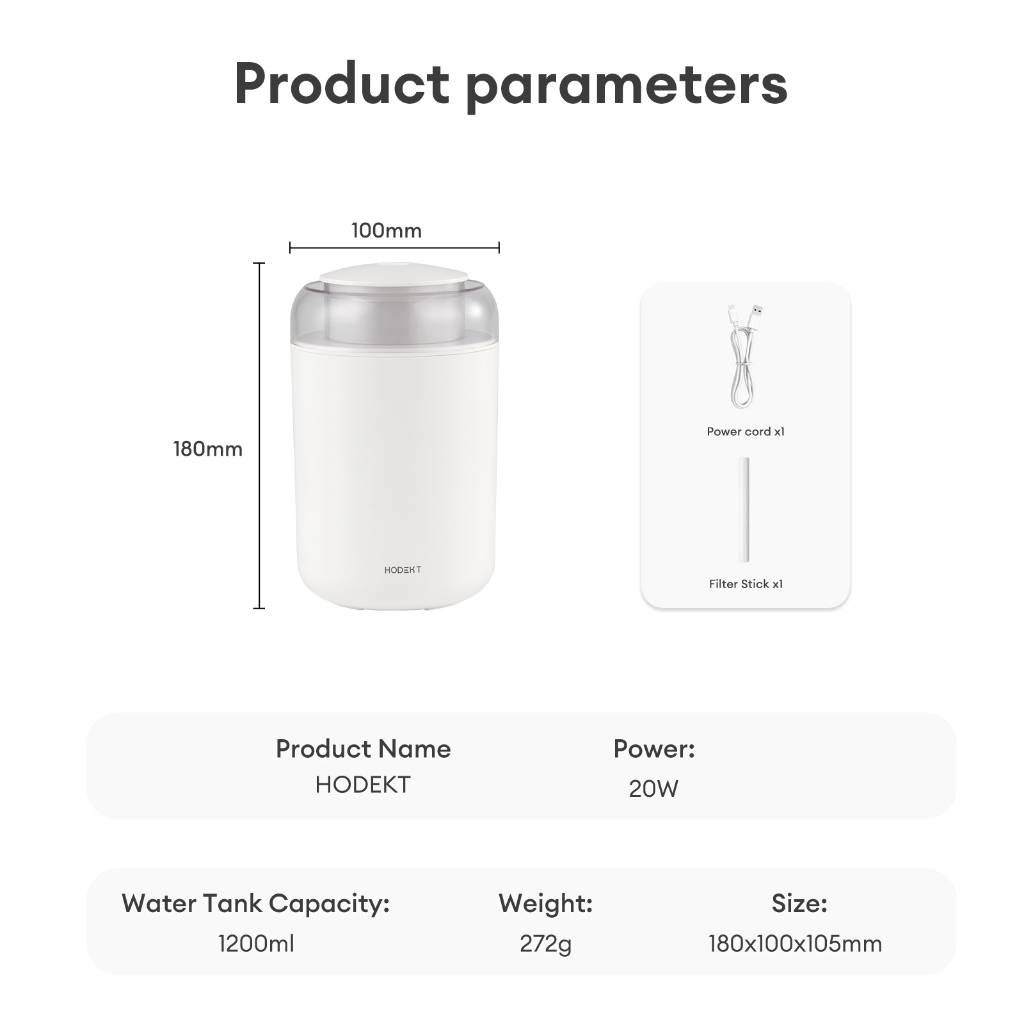 HODEKT 1.2L Portable Air Humidifier Aroma Essential Oil Diffuser Mood Light USB For Home Car Office