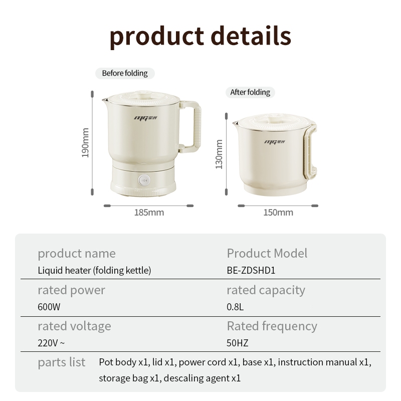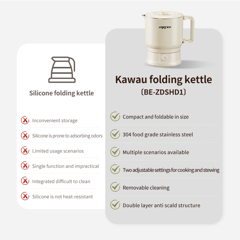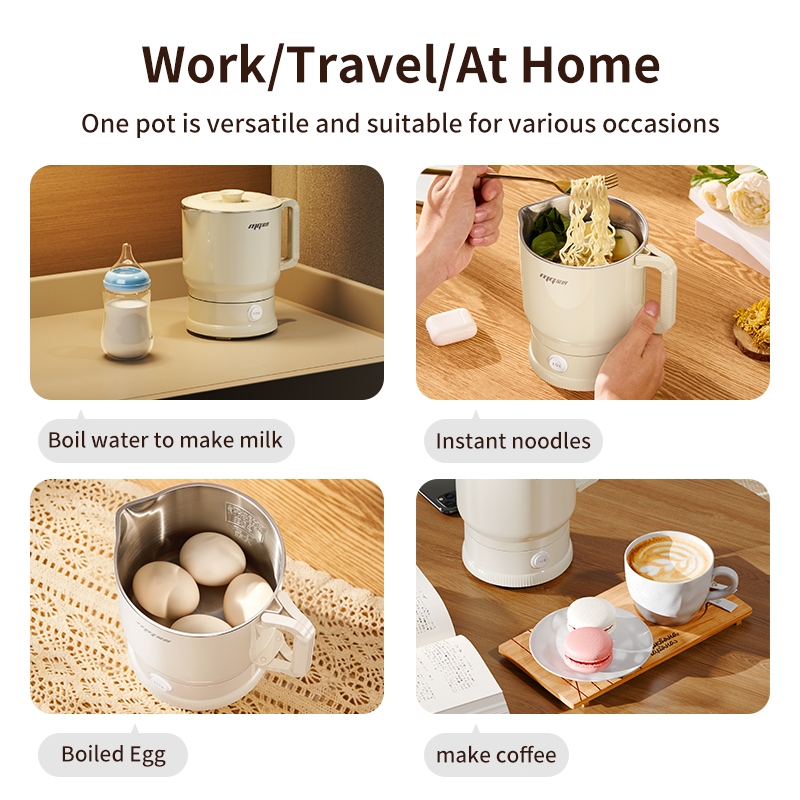 【Japan Design】 Portable 800ml Electric Foldable Kettle,600W Fast Boil for Travel,316 Stainless Steel
