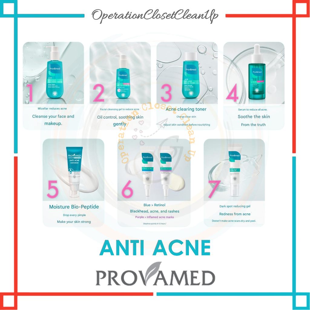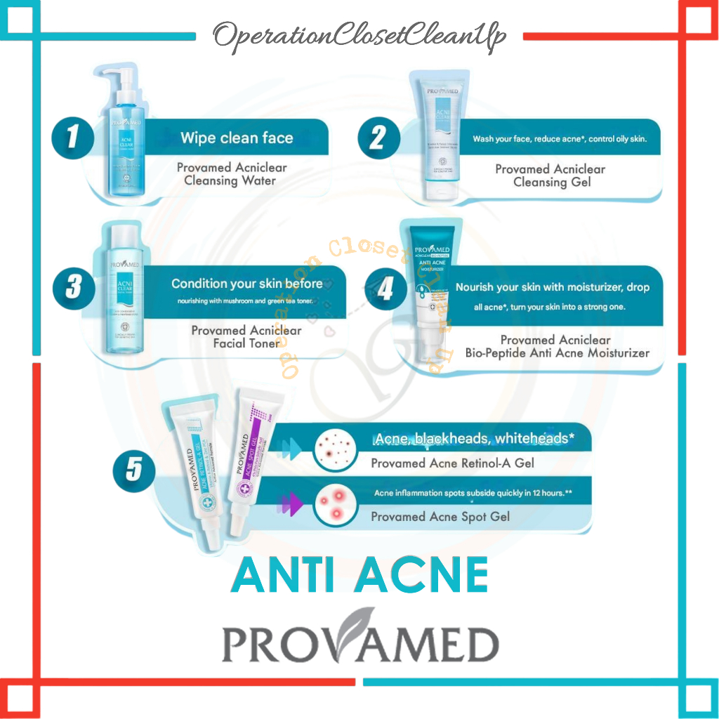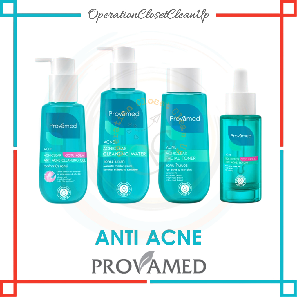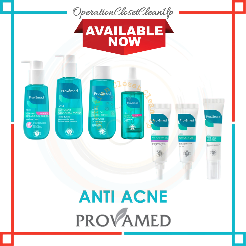 🇹🇭 Provamed Acniclear Toner 200ml, Spot Gel 10g, Retinol Gel 10g, Cleansing Gel 120g