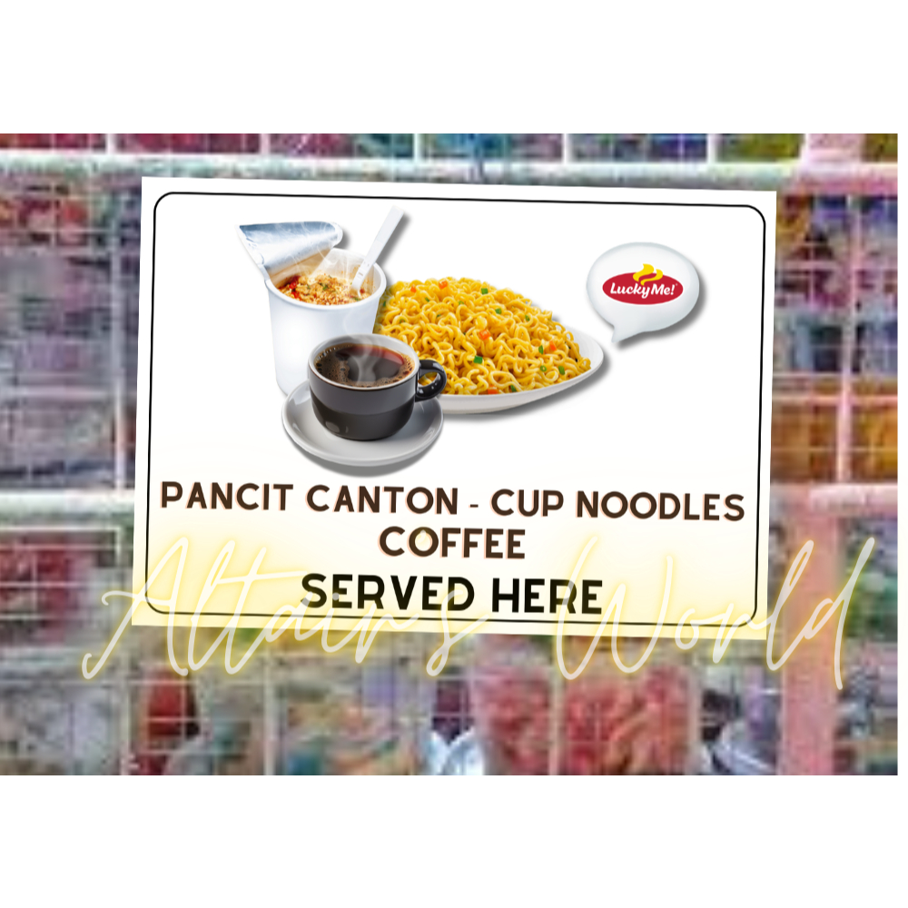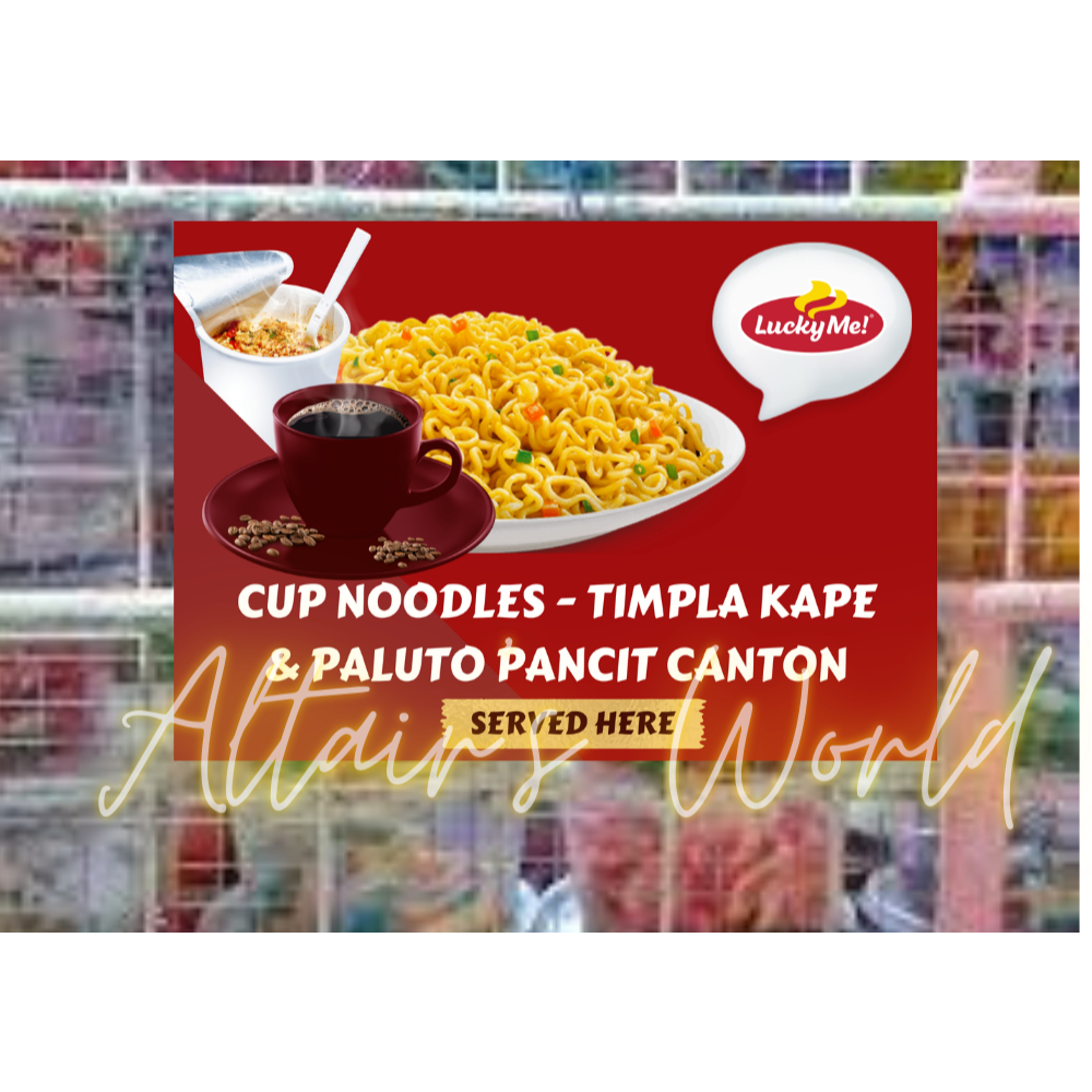 Signage for business : Sari sari Store Signage : Timpla Kape - Cup Noodles Served - Available Here