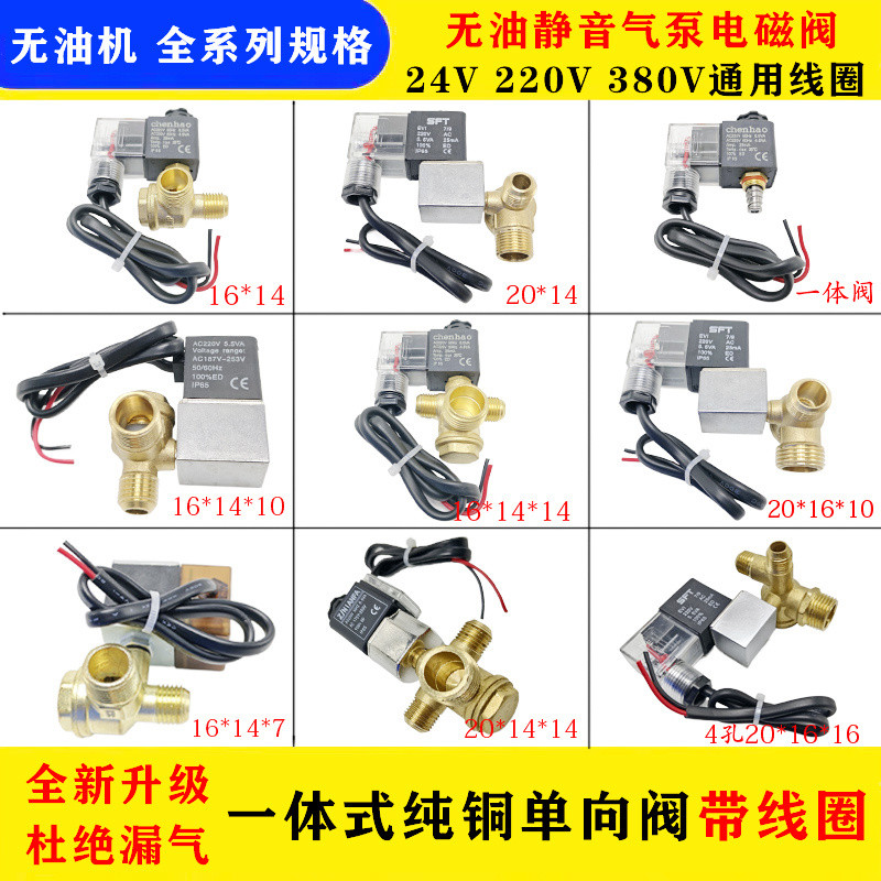 Silent Oil-Free Air Compressor Pure Copper One-Way Valve Solenoid Valve Full234One-Way Valve Silent Air Pump Accessories