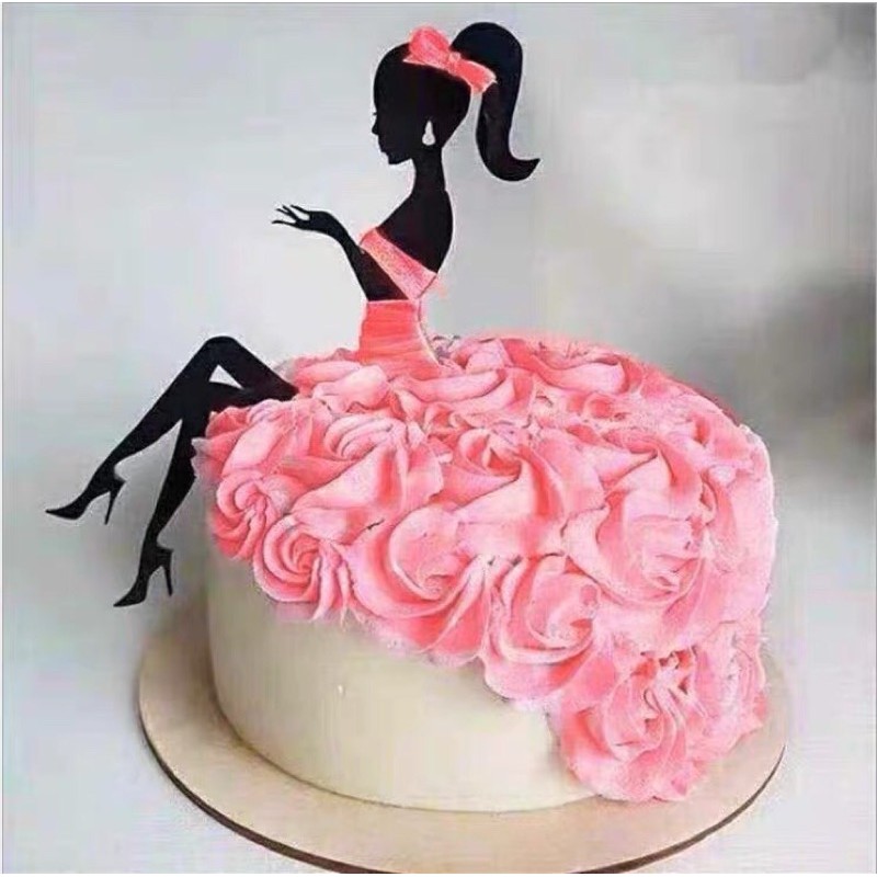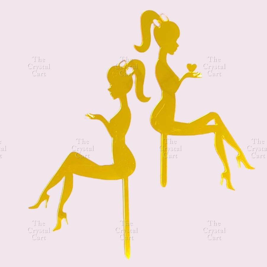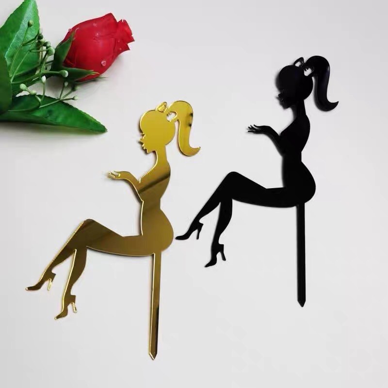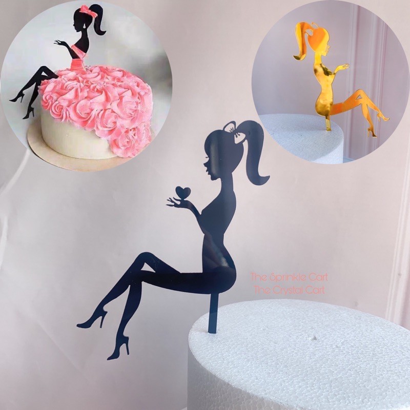 Silhoutte Lady Girl Black Gold High Heels Acrylic Cake Topper
