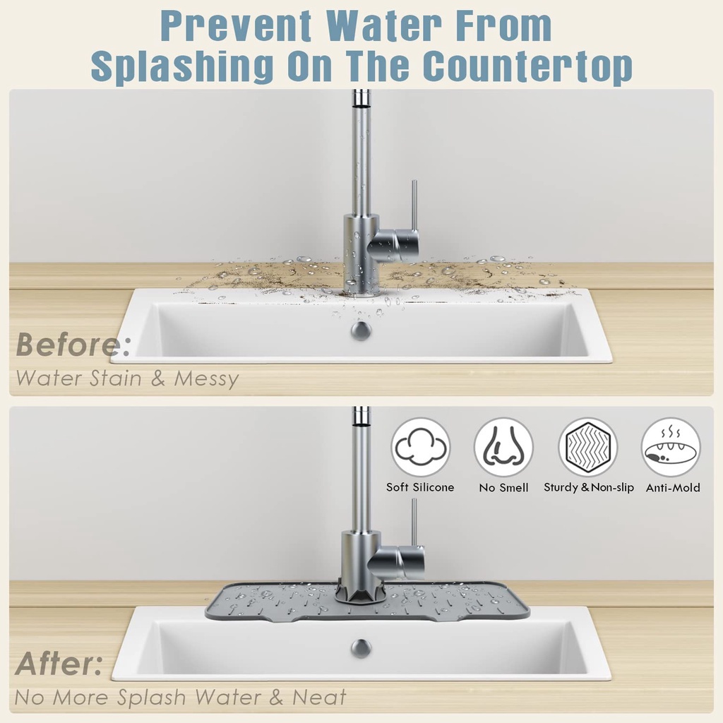 Silicone Faucet Splash Water Catcher Mat Fit Faucets,Faucet Drain Mat,Bathroom Faucet Protector Mat