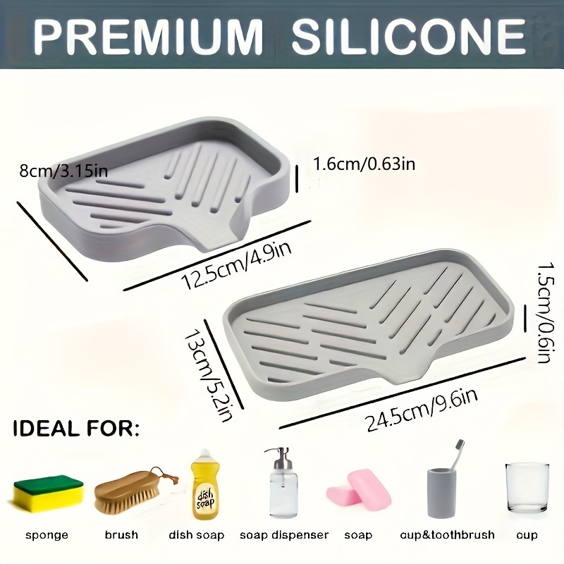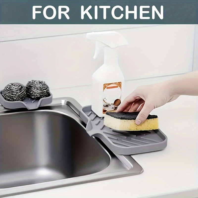 Silicone Kitchen Sink Tray, Soap Dish Rack with Drain Head, Countertop Sink Sink Sink Sink Sink, Used for Brush Sponge and Soap, Household Kitchen Bathroom Supplies