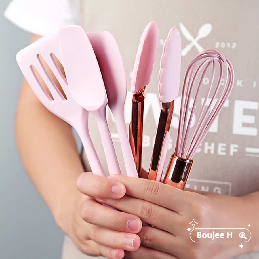 Silicone Kitchenware Cooking Utensils Set Non-stick Cookware Spatula Shovel Egg Beaters Wooden Handle Kitchen Cooking Tool Set
