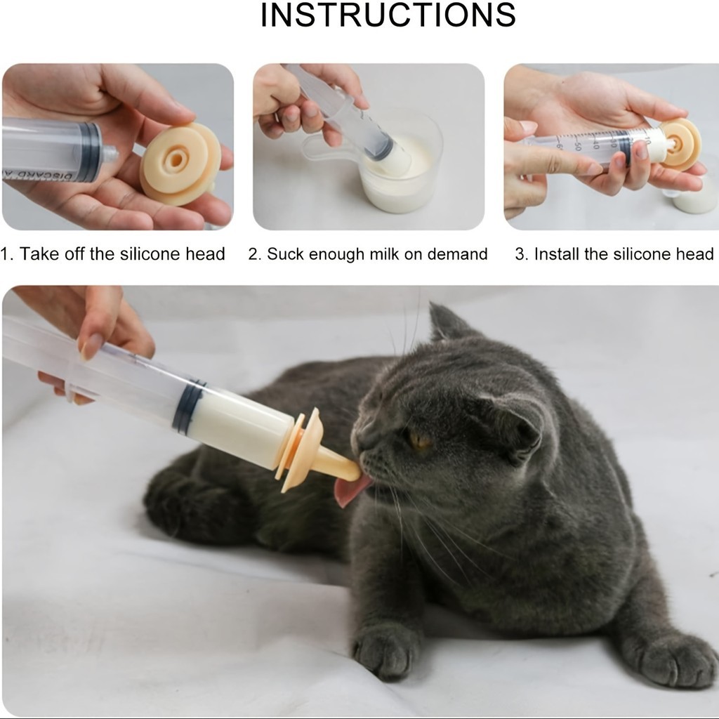 Silicone Material Kitten Nipples for Nursing, Reusable Kitten Syringe for Feeding,Silicone Pacifier Suitable for Kittens, Puppies and Wild Animals.