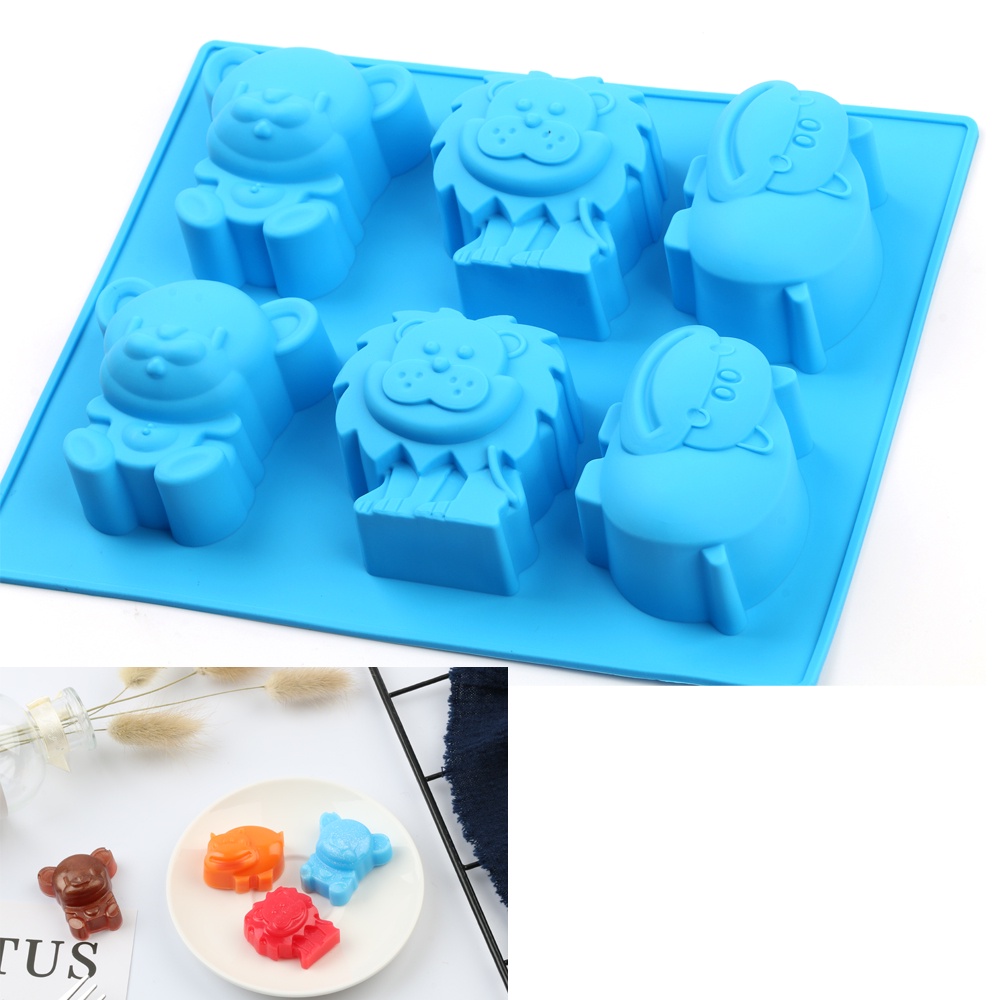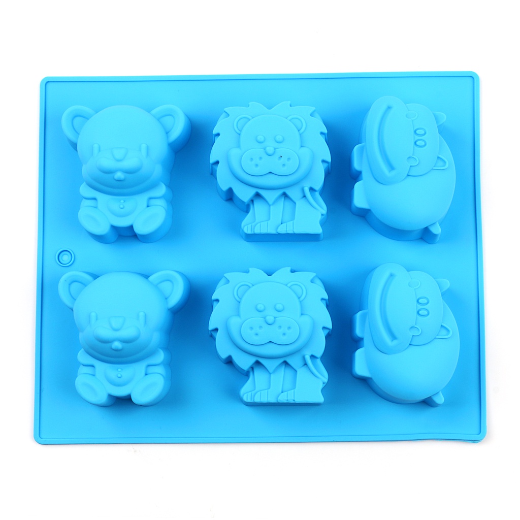 Silicone Mold Hippo Lion Bear Animal Cake Chocolate Mold 6 Cavity Soap Making Moulds Resin Clay Aroma Stone Moulds DY 3D Fun Random Color