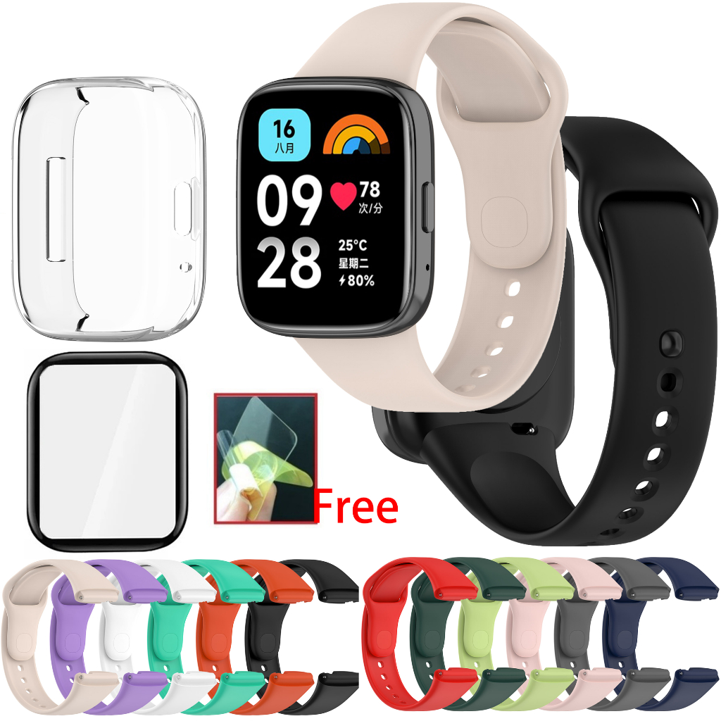 Silicone Strap for Redmi Watch 3 Active Lite Watch3 Soft Waterproof Sport Band Fashion Wristband+Case Cover Screen Protector Pmma Tpu