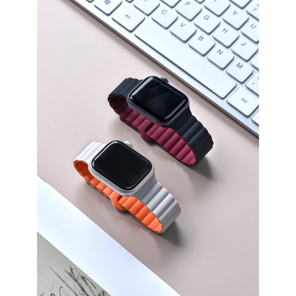Silicone link loop Magnetic strap For apple watch band 44mm 40mm 41mm 45mm bracelet iWatch series 7 6 SE 5 4 3 42 38 49mm