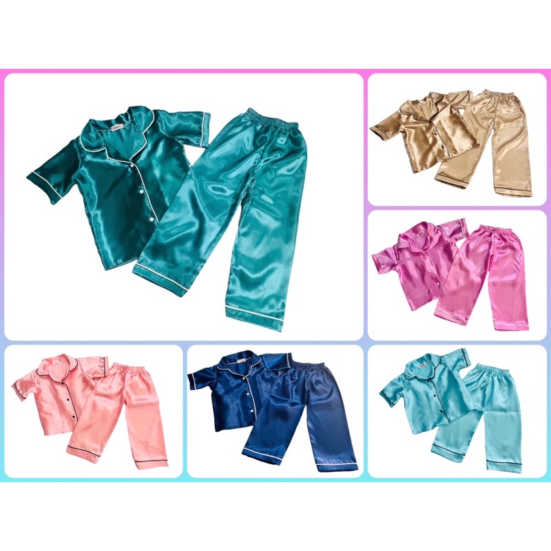 Silk Terno Pajamas Sleepwear For Kids Toddlers Baby Boys and Girls/ Pastel Color