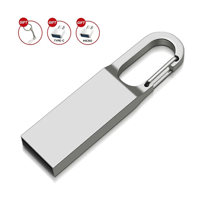 Silver Metal Waterproof Flash Memory Driver 16GB/32GB/64GB/128GB/256GB/512GB/1TB/2TB Portable Pen Driver with TYPE-C Adapter, Suitable for Mobile Phone Computer-Support Customized Logo