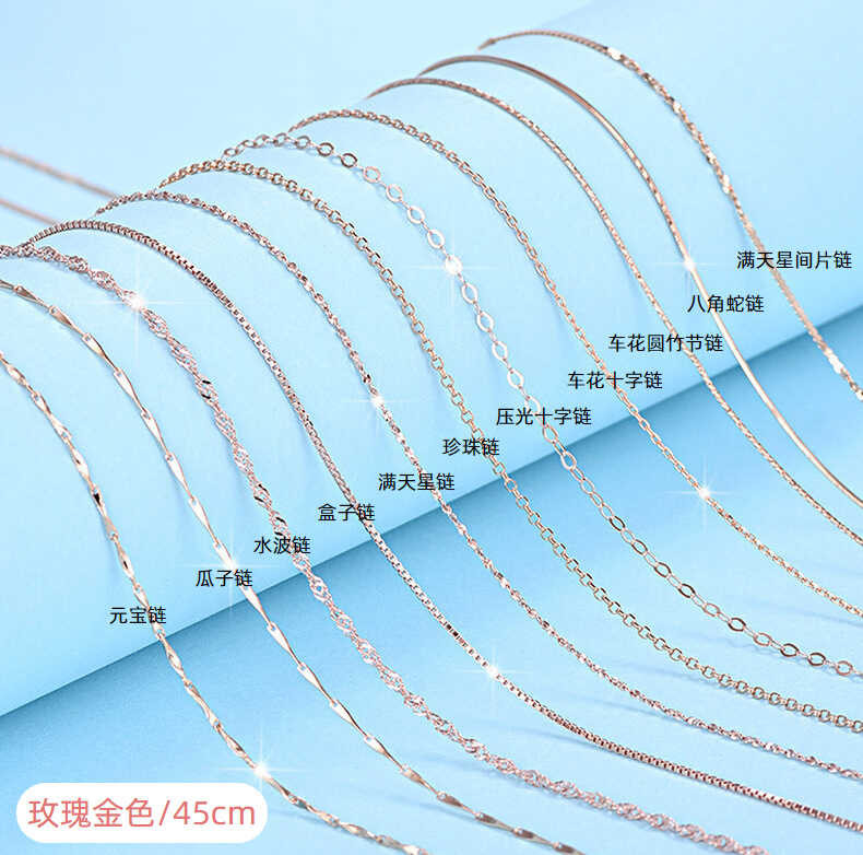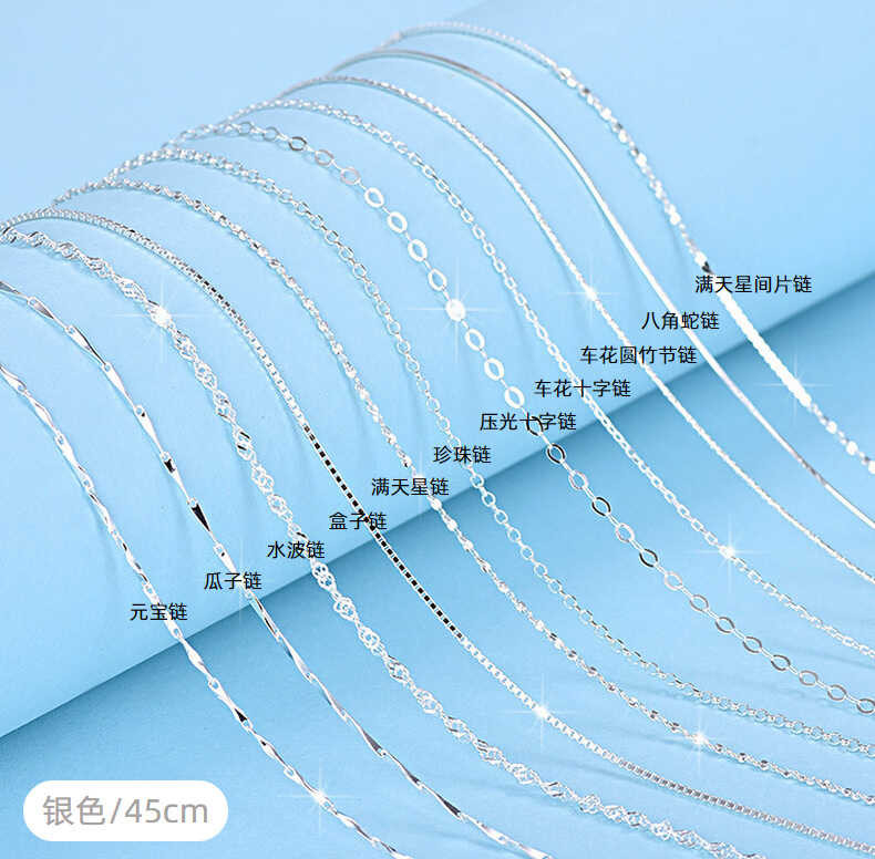 Silver S Sterling Necklace Box Chain Yuan Bao Gua Zi Shui Bo Man Tian Xing Snake Bone Cross Female C