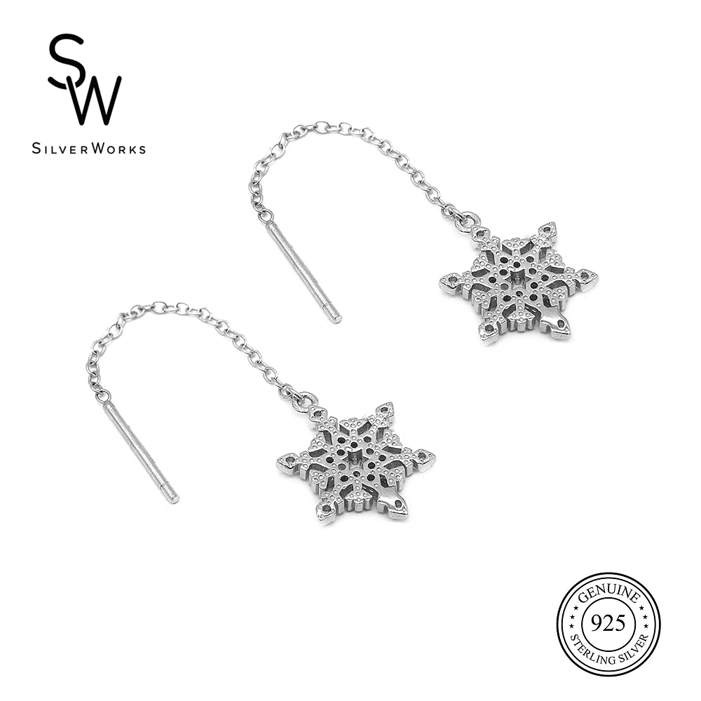 Silverworks E7434 Classic Snowflakes Threaded Earrings - Frozen 2 Collection