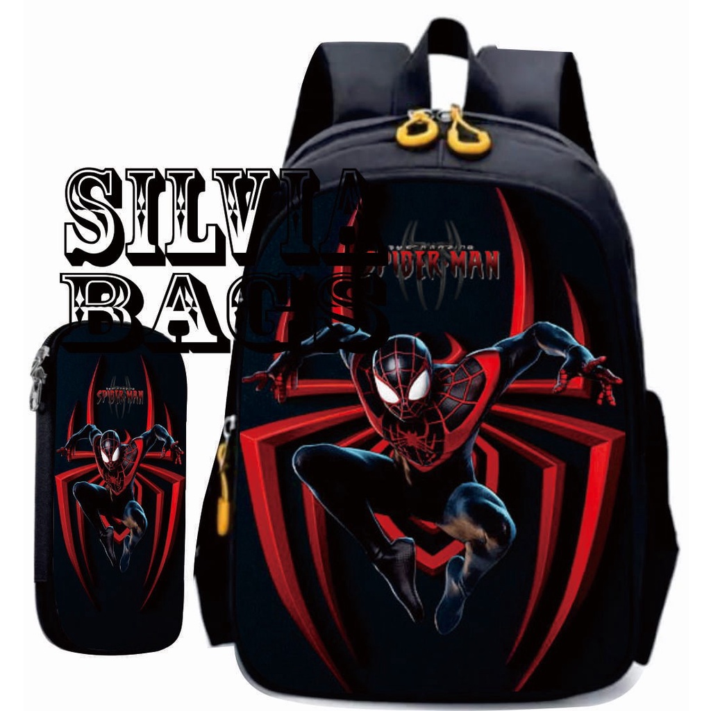 SILVIA BAGS children's school BAGS - Can pay on the spot SPIDER-MAN children's backpacks Newest Boys' School BAGS PAUD Kindergarten SD teraris School BAGS but not cheap 2in1in BONUS WALLET