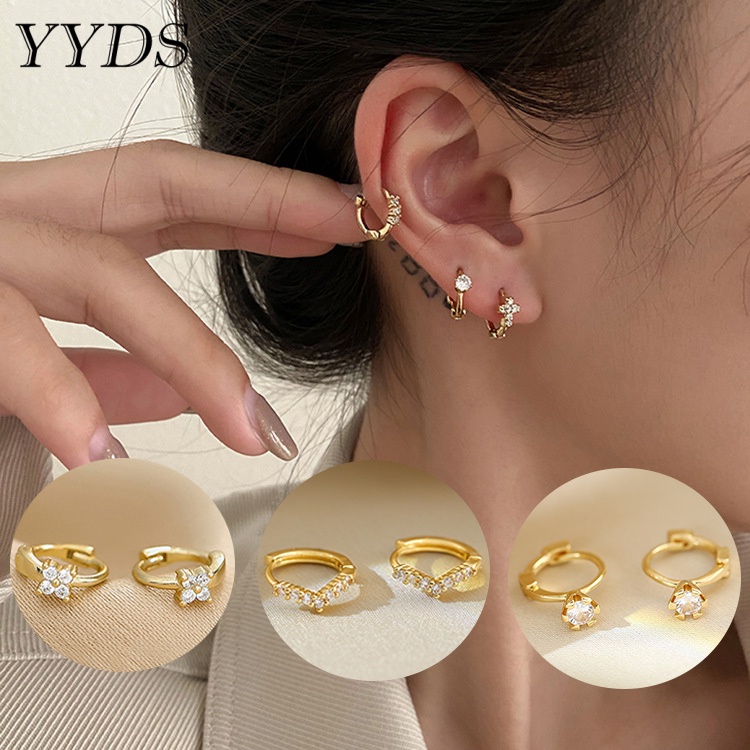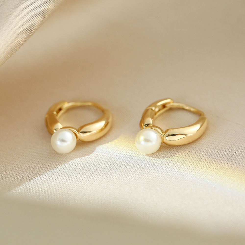 Simple Gold Hoop Earrings 18K Gold Pearl Crystal Earing for Women Unisex Fashion Jewelry Accessories
