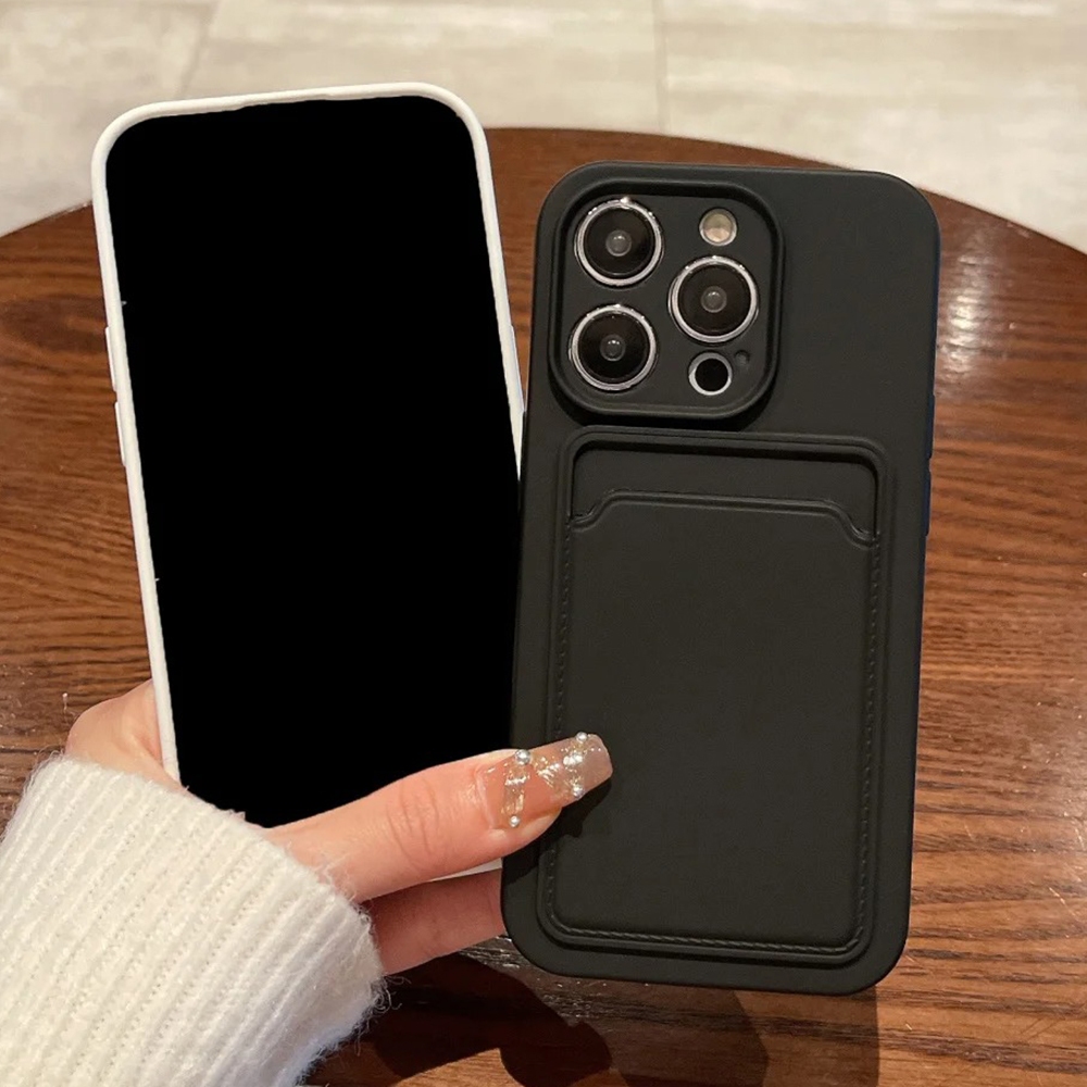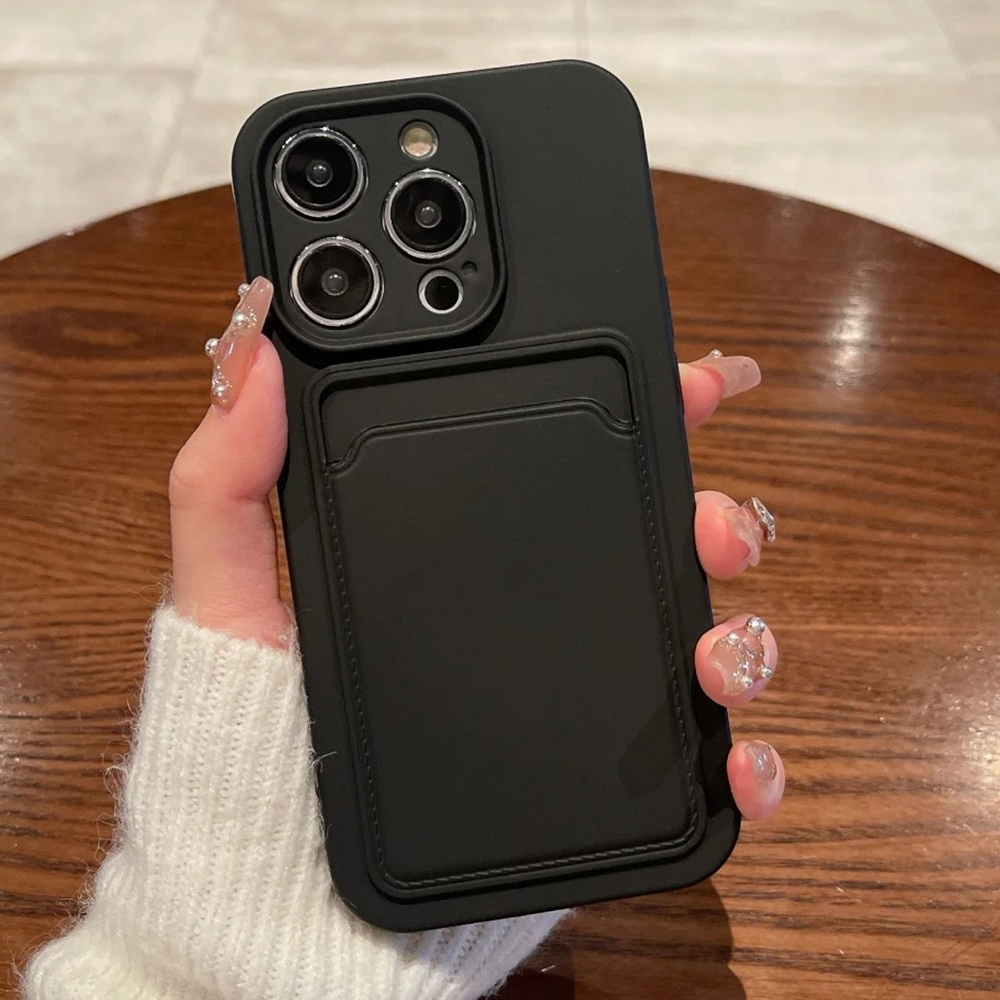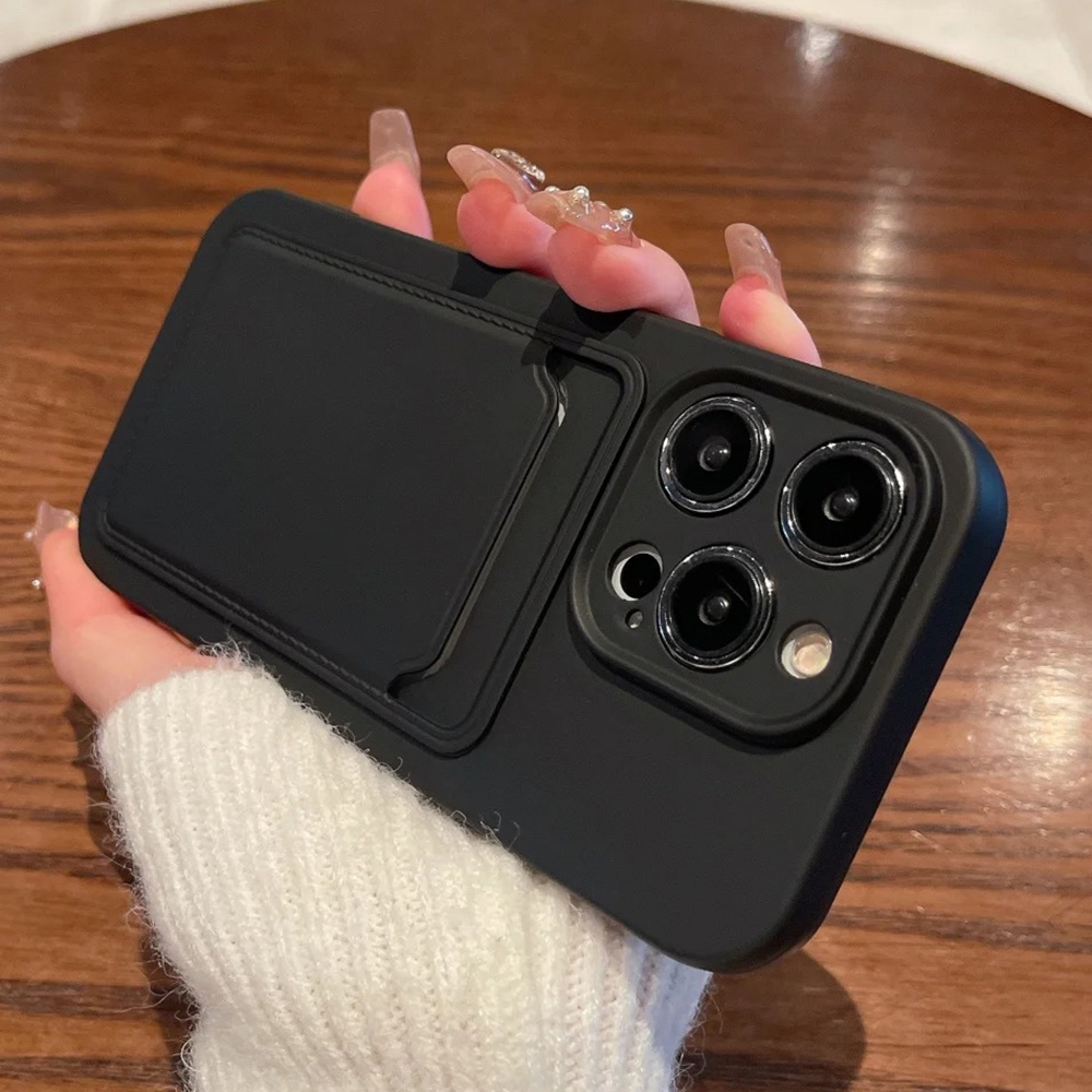 Simple Card Holder Phone Case for IPhone 11 17 16 15 14 12 13 Pro Max XS XR 8 7 Plus Lens Protection anti-dirt Soft TPU Phone Back Cover