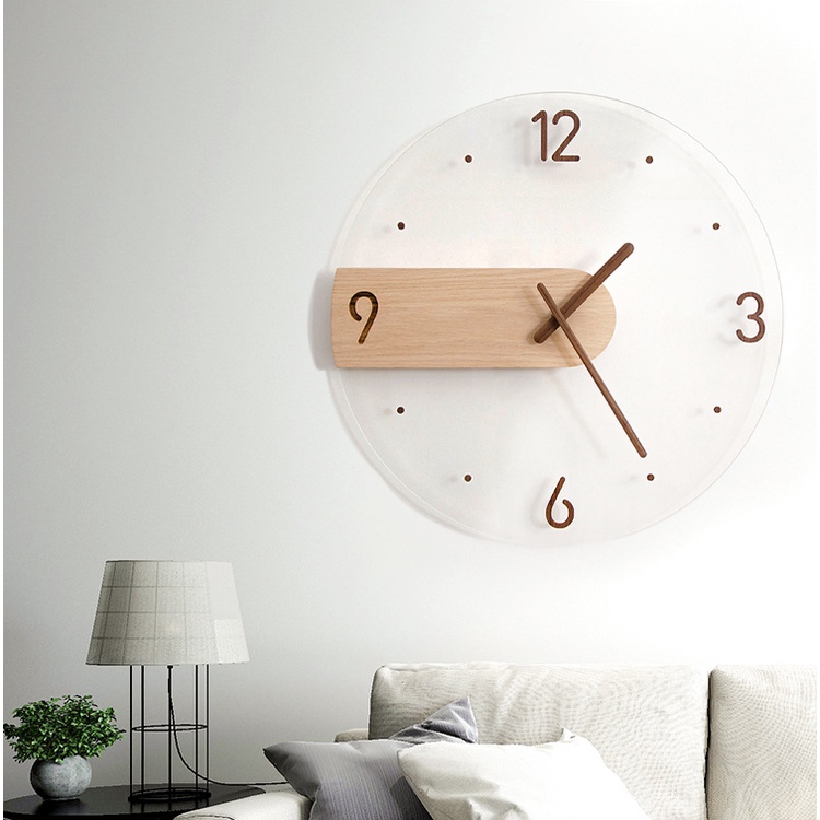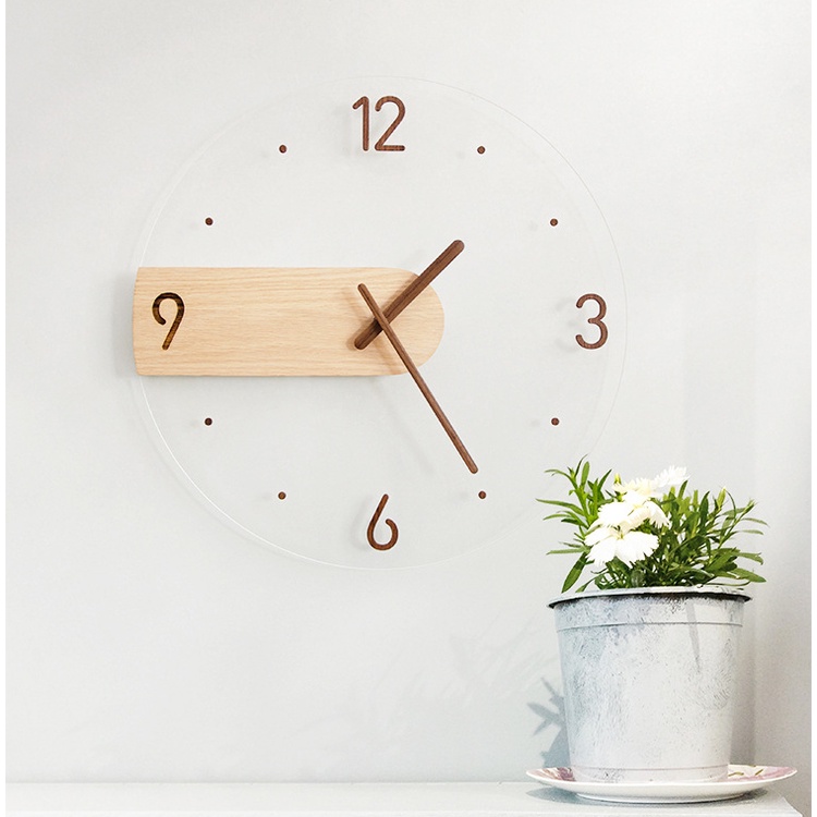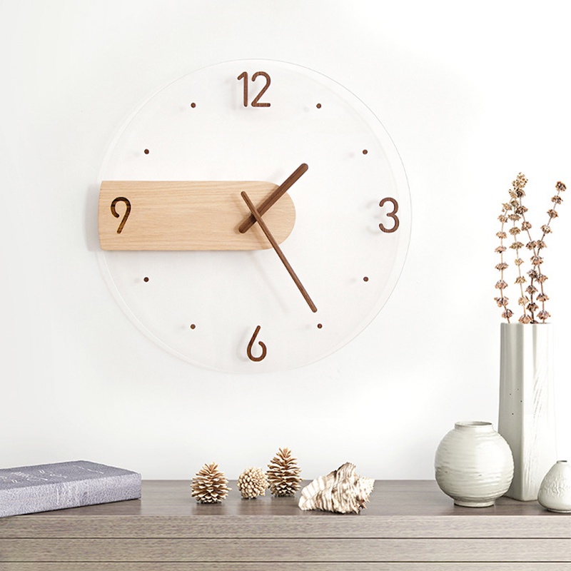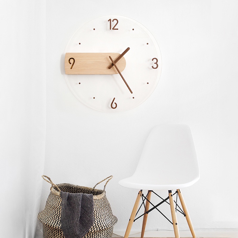 Simple Nordic Wall Clock Creative Solid Wood Acrylic Glass Home Living Room Wall Clock