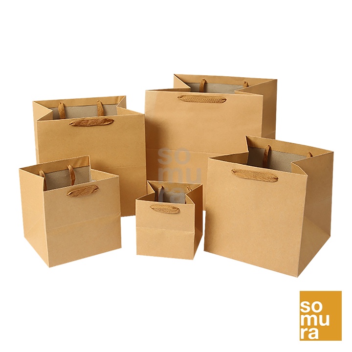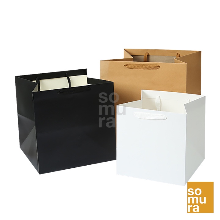 Simple Square Gift Shopping Bag Square Brown/Black Cake Box Takeaway Kraft Paper Bag (SSC888)