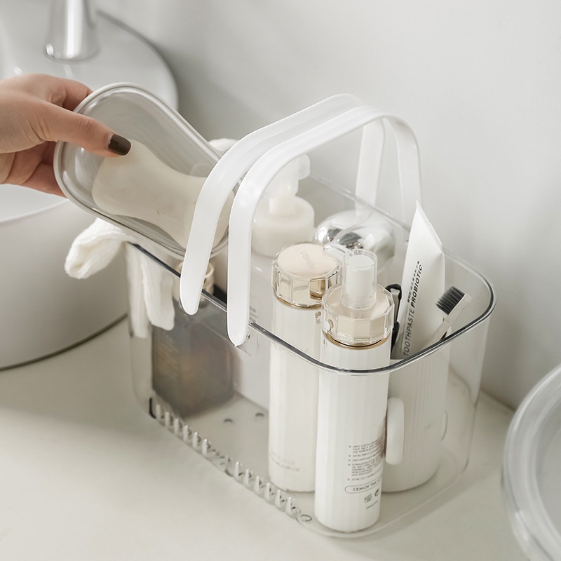 Simple Style Shower Plastic Storage Basket with Handle Home Bathroom Transparent Storage Basket