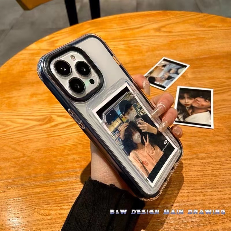 Simple Transparent Card Holder Phone Case for iPhone 15 14 Pro Max Plus 13 12 11 Pro Max Casing 2 in 1 Fall Proof Shockproof Full Soft Cover