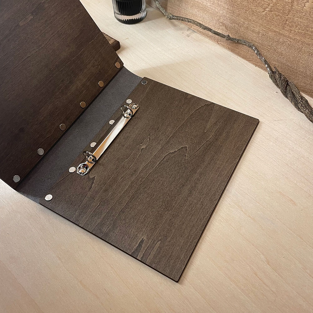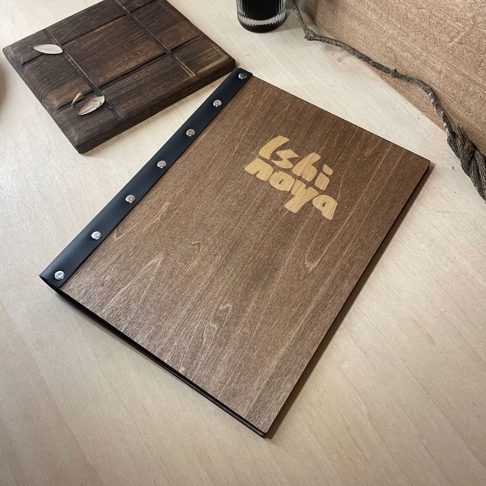 Simple and retro personalized wooden menu folder menus board display book custom engraved logo wood menus cover binder suitable for restaurants bars weddings and banquets