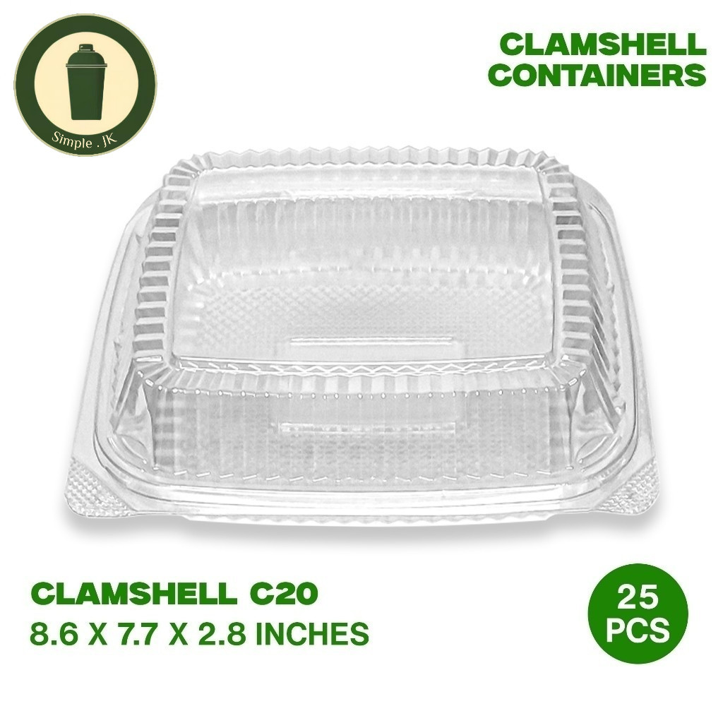 Simple.JK 25pcs Plastic Clamshell Round Square Rectangle Disposable Clear PET Food Container